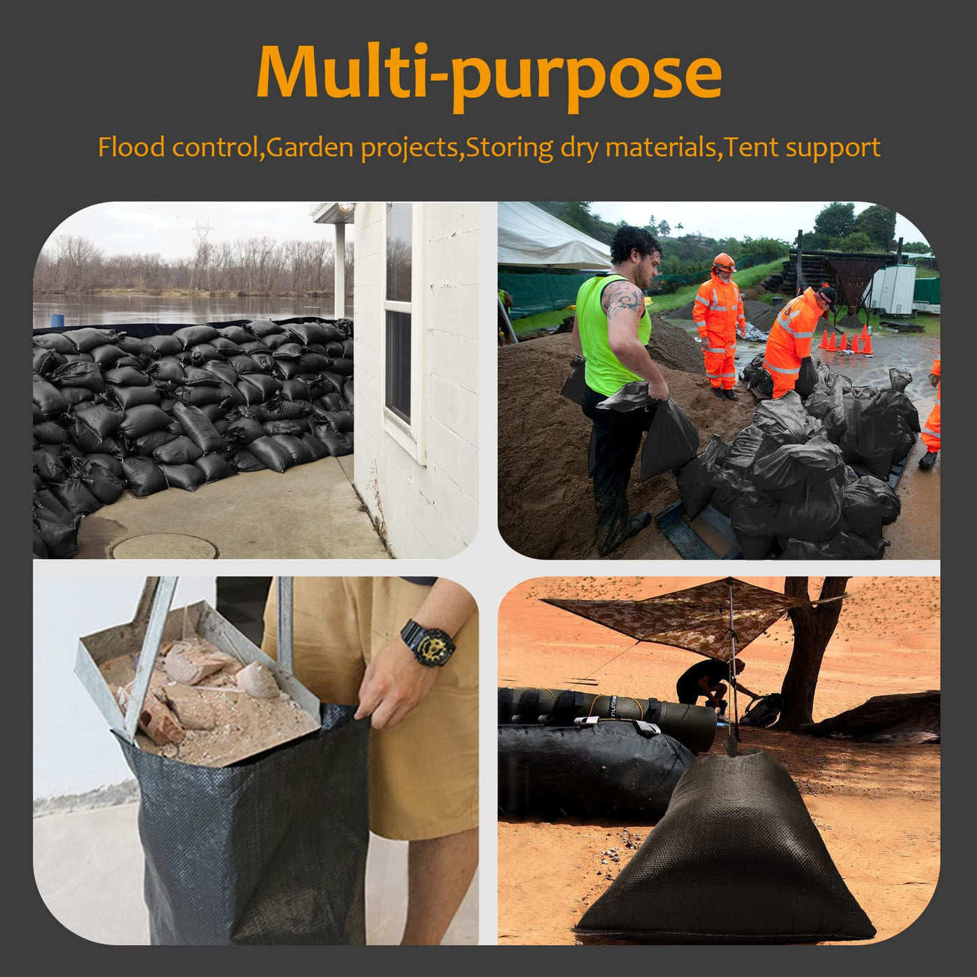 Askiz Heavy Duty Sand Bags Empty Woven Sand Bags With Tie Strings With 1600 Hours Of Uv Protection Polypropylene Sand-Bags - 16 X 25.5 Ultra Tough Sandbags For Hurricane Flooding (Black 100 Bags )