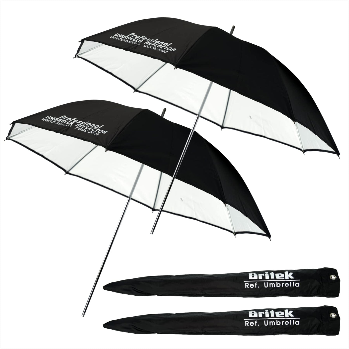 Britek [2 Pack] Professional Studio 32'' (80Cm) Black + White Reflector Umbrella W/Protective Sleeve, Metal Parts For Portrait V