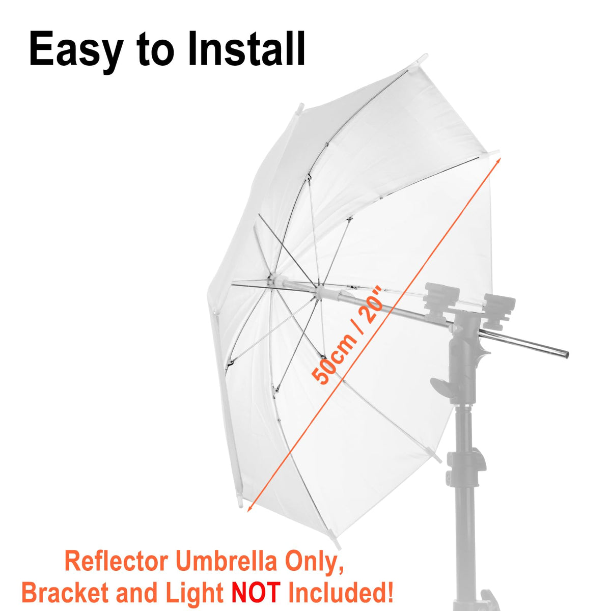 2 Pack Photography Reflector Umbrella 20 Inch/ 50Cm Diameter White Translucent Soft Umbrella Photography Photo Video Studio Mini Lighting Diffuser For Indoor Outdoor Portrait &Amp; Product Studio Shooting* The White Soft Lighting Umbrella Can Reflect And Spread Light Stream Evenly To Reduce Glare And Spots In Shots.* Perfect For Shooting Highly Reflective Bright Objects, Effectively Dissolving Hard Light And Softening Shadows.* Made Of Quality Soft Light Nylon Fabric With Alloy Umbrella Frame, Which Is Reliable, Durable And Tear-Resistant.Package Included: 2 Pcs Mini Photography Umbrellas (Bracket And Light Not Included)