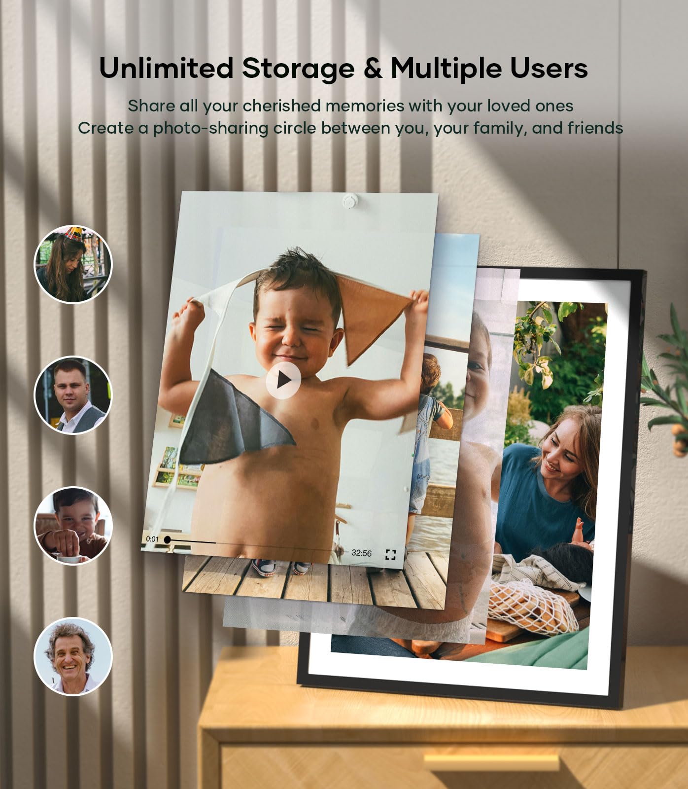 Q: Does the Cozyla Digital Picture Frame offer unlimited storage for photos and videos?A: Yes, the Cozyla Digital Picture Frame provides free unlimited storage, allowing you to share and save every priceless moment with your loved ones. This feature makes it easy to keep your digital memories organized and accessible.