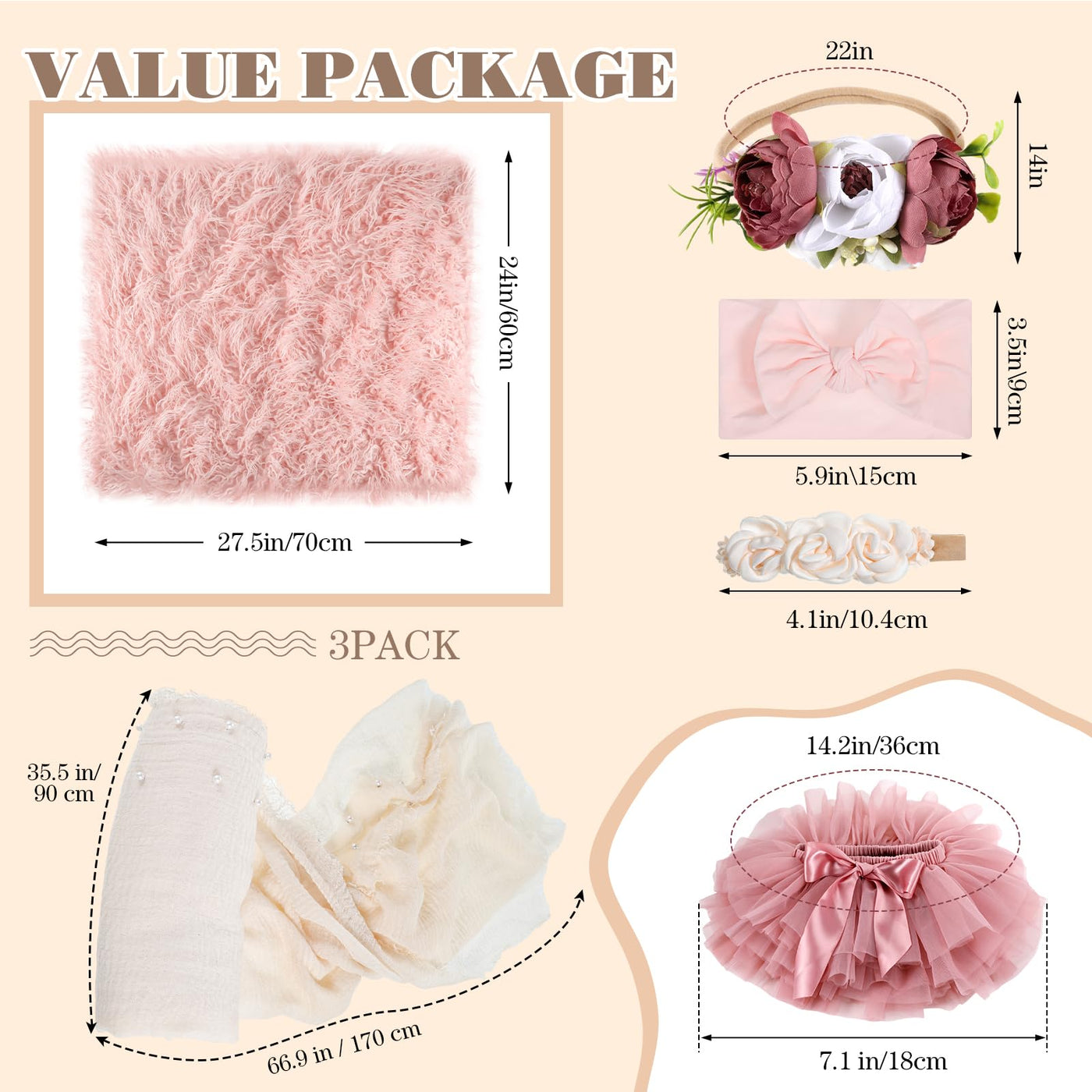 Features: Elegant Pink Color: These Newborn Girl Photoshoot Outfits Come In An Attractive Pink Color Which Makes Them More Charming And Appealing While Leaving An Unforgettable Visual Memory. Diy As You Wish: These Newborn Photoshoot Props Instill Creativity And Innovation Amongst Photographers. They Can Use These Props In Different Photographic Settings To Generate A Variety Of Photos With Different Setups, Styles, And Poses, Providing Memorable Moments. Specifications: Material: Blanket For Baby Photo Props: Acrylic Fiber Fluffy Tutu Skirt: Gauze Bow Headbands: Nylon Color: As The Picture Shows Size: Blanket For Baby Photo Props: About 23.6 X 27.6 Inches/ 60 X 70 Cm Wrap For Photoshoot: About 35.4 X 66.9 Inches/ 90 X 170 Cm Fluffy Tutu Skirt: About 7.1 Inches In Length, 14.2 Inches In Waist Circumference Headbands: Stretch Up To About 14 Inches To 22 Inches Bow Headbands: 5.9 X 3.5 Inches/ 15 Cm X 9 Cm Package Includes: 1 X Fluffy Tutu Skirt With Diaper Cover 1 X Blanket For Baby Photo Props 1 X Wrap For Photoshoot 3 X Headbands Notes: Manual Measurement, Please Allow Slight Errors On Size. The Color May Exist A Slight Difference Due To Different Screen Displays.