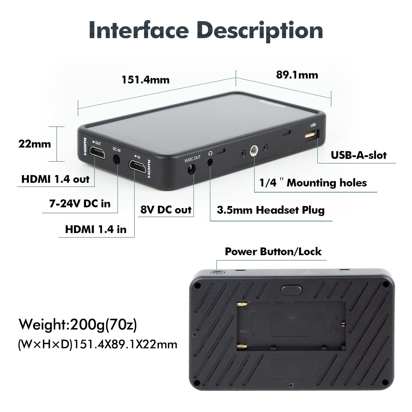 Desview R5Ii Camera Monitor, 5.5 Inch Touch Screen Field Monitor With 3D Lut Full Hd 1920X1080 Ips Waveform Vectorscope Peaking Focus 4K Hdmi 8V Dc Input Output For Dslr Camera