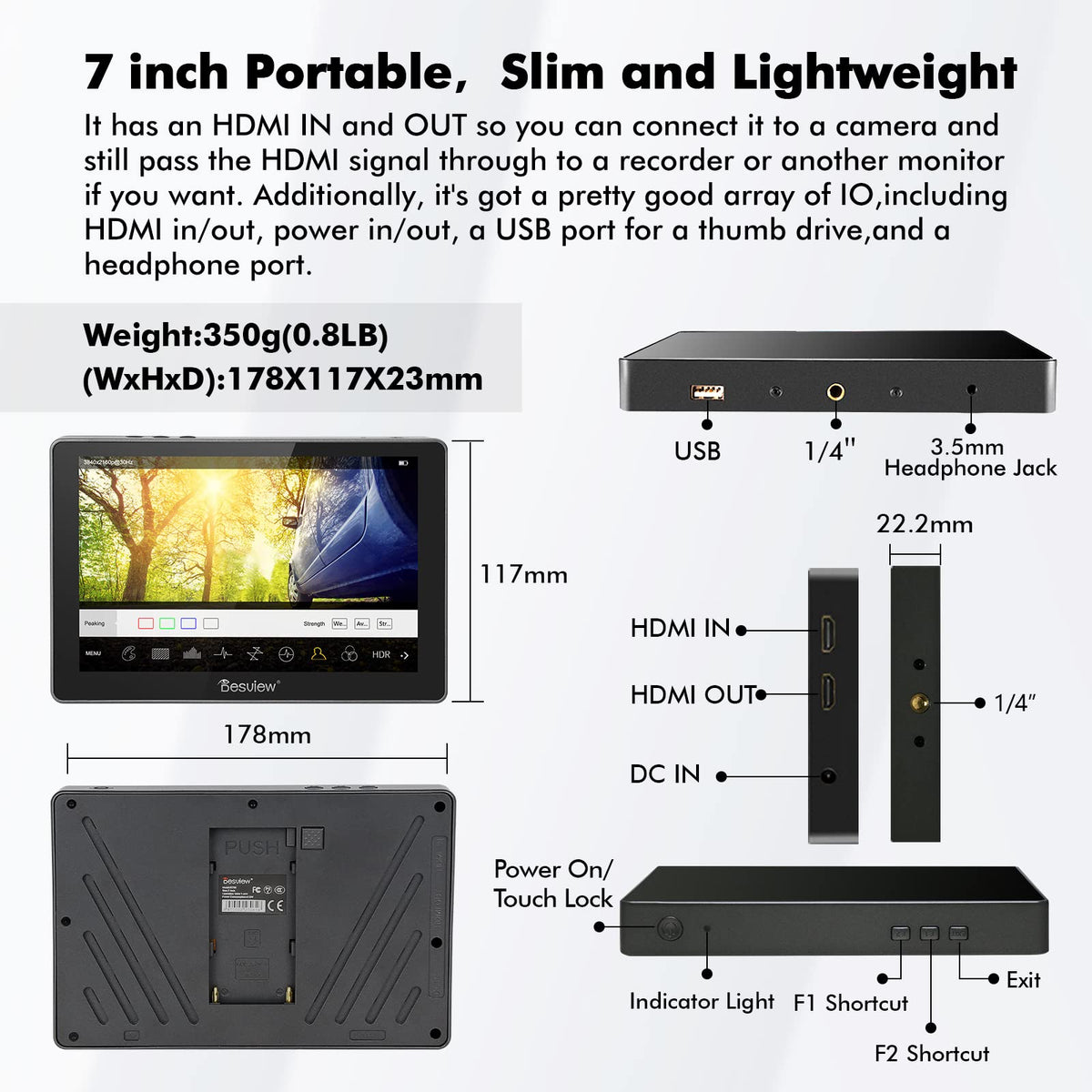 Desview R705 Camera Field Monitor, 7 Inch Touch Screen Field Monitor Full Hd 1920X1200Ips 4K Hdmi With 3D Lut Waveform Peaking F