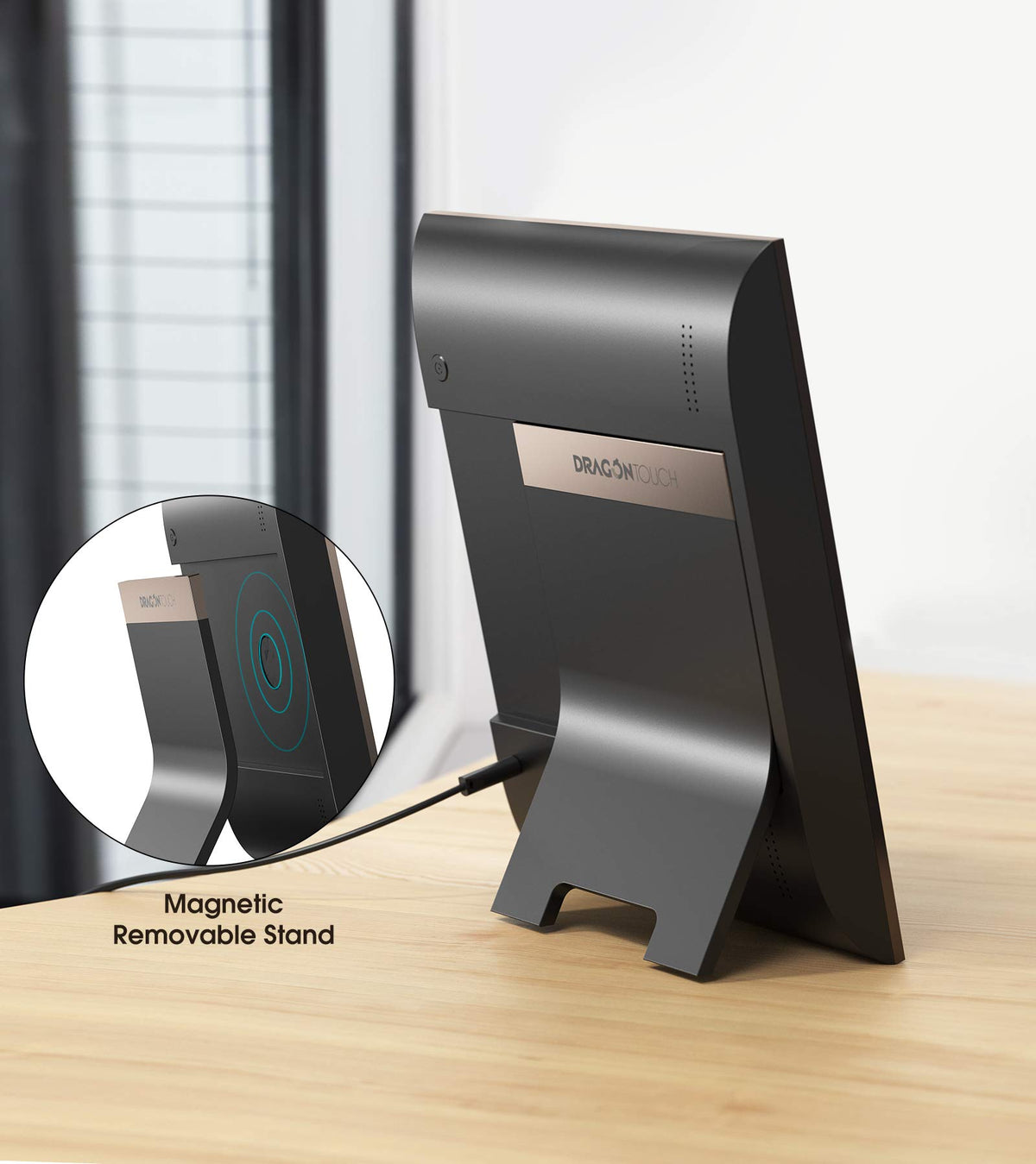 ?Unique Magnetic Stand Design?: Come With An Adjustable Magnetic Stand And Built-In Auto Rotation Function, Which Can Be Easily Changed To Horizontal And Vertical Stand Without Screw. With Upgraded Smart Motion Sensor, This Digital Picture Frame Can Also Detect People Passing Within 5 Meters And Then Turn On The Screen Automatically. | ?High Definition Touch Screen?: Built-In 10 Inch Touch Screen With 1280*800 Hd Display Resolution, And 4:3 Aspect Ratio, Which Can Stay Clear In Any Light And Perfect Display At Any Angle. Brightness Can Also Be Adjusted To The Most Comfortable View In The Setting, No Worry Digital Picture Frame Too Bright By Day Or Too Dark At Night. | ?Large Storage And More Tressure Moments?: Built-In 16Gb Internal Memory, Which Can Store Around 40,000 Photos Of 300Kb/Pc, Big Memory To Keep Photos And Moments In The Digital Picture Frame. Download Ourphoto App And Can Have A Quick Set. (Note: There Are No Usb And Sd Card Slots On This Picture Frame) | ?More Function And Easy To Use?: Besides Built-In Calendar, Clock, Alarm, Weather Functions, And This Digital Picture Frame Can Also Customize Sleep Schedule And Its User Management Setting Can Support You A Better Viewing Experience. User-Friendly Interface Design Makes It Easy-To-Use For All Ages, Just A Few Steps To Complete The Setup And Begin To Enjoy, Suspended Ball Is Also A Quick Navigation Key, Which Can Help You To Back To Home, Adjust The Volume, Turn Off And Restart The Device. | ?Keep In Touch And Connected?: Share All Your Unforgettable Moments And Memories Via App, E-Mail Or Ftp. Dragon Touch Classic 10 Elite Upgraded Digital Picture Frame, A Perfect Gift For You To Connect Families And Friends In Spite Of Long Distance With No Limits.
