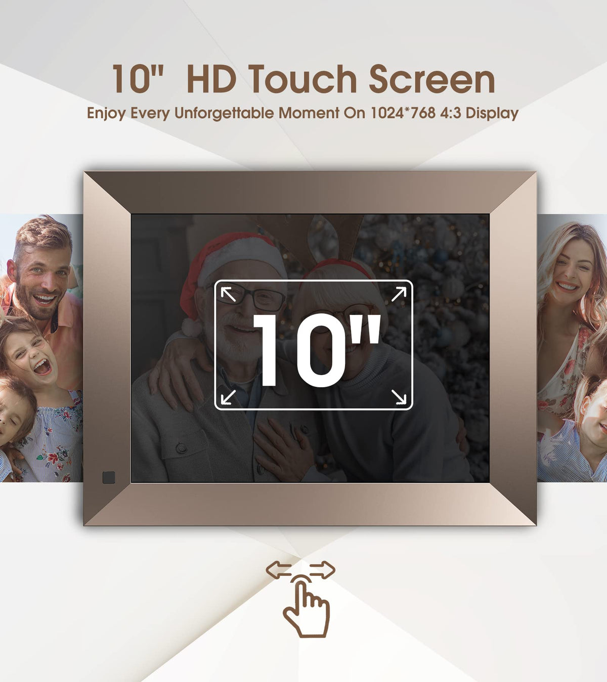 Dragon Touch 10 Inch Wifi Digital Picture Frame,Adjustable Magnetic Stand,Ips Touch Screen Hd Display,16Gb Storage,Motion Sensor