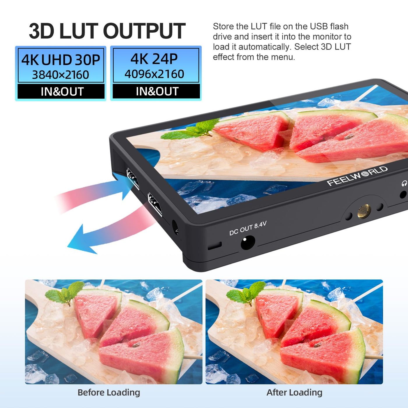 Feelworld F5 Pro V4 6 Inch Dslr Camera Hdmi Monitor Bundle + Battery+Carry Case+ Micro Touch Screen With 3D Lut 1080P 4K Hdmi With Externalf970 Power Plate Compatible With Wireless Transmitter