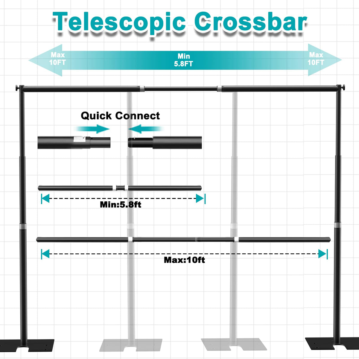 Q: What are the dimensions of the Fotoumgl Backdrop Stand?A: The Fotoumgl Heavy Duty Backdrop Stand is adjustable in height from 3.9 to 10 feet (120 to 305 cm) and in width from 5.8 to 10 feet (177 to 305 cm), making it versatile for various background sizes.