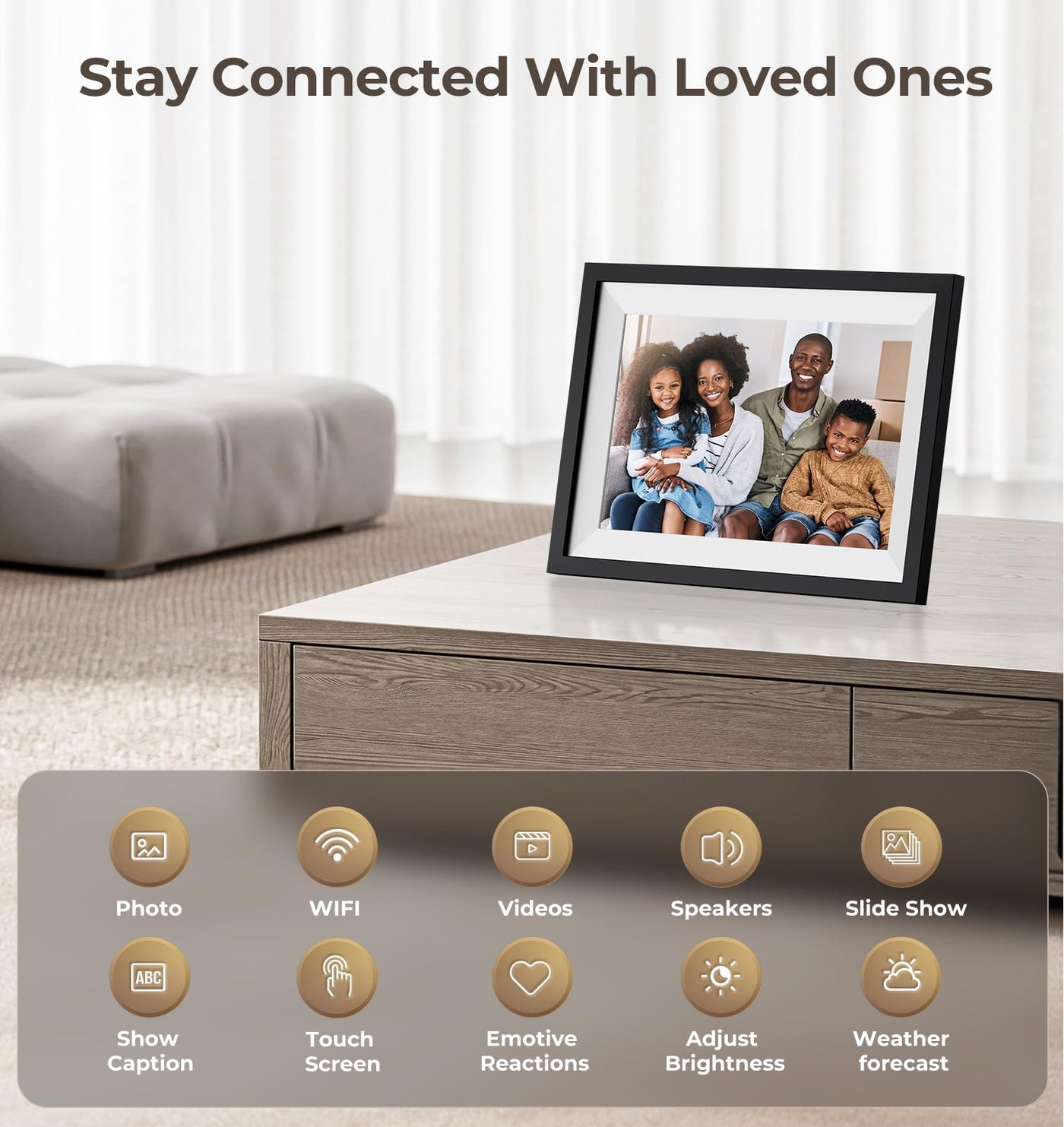 ?Digital Picture Frames Load From Phone?Our Digital Picture Frame Boasts A 10.1-Inch Ips Hd Touchscreen With A Stunning 1280*800P Resolution. The Ips Technology Provides A Wide Viewing Angle And Accurate Color Reproduction, So You Can Enjoy Your Cherished Moments To The Fullest. | ?The Gift For A Loved One? Unveil Cherished Memories With Ciowain'S Digital Photo Frames. Gift Moments Of Joy To Grandparents-Shareable Videos & Pictures Of Kids, Encapsulated In Our Frames. An Elegant Gift Box, Loaded With Heartfelt Moments, Ready To Bridge Generations. Celebrate Family Bonds Through Our Frames, A Heartfelt Gift That Transcends Time. | ?Enhanced Storage Capacity?This Frameo 10.1 Inches Wifi Digital Picture Frame Comes With A Built-In 16Gb Memory And Supports Up To 32Gb Micro Sd Card, Enabling Storage Of Over 50,000 Photos Within The Electronic Picture Frame. | ?Instant Wireless Sharing & Safe? Utilizing Ciowain'S Instant Wireless Sharing Feature, Link To Wi-Fi, And Add Friends By Using The Pairing Code Of The Frameo App (Allowing Over 500+ Family Members To Scan And Bind The App). The Qr Code Is Instantly Generated, Ensuring Your Privacy And Security. | ?Simplicity Redefined:Suitable For Everyone?Our 10 Inch Digital Photo Frame Ensures Simple Setup&Use, Catering To All, Even Those Less Tech-Inclined. With An Intuitive Interface And A User-Friendly Touch Screen, Setting Up Becomes A Breeze. It Comes With A Stand Offering Two Adjustable Viewing Angles And Wall Mount Capabilities For Versatile Placement. Plus, It Boasts Ample Storage, Preserving Your Cherished Memories Hassle-Free. -A Frame Made For Everyone