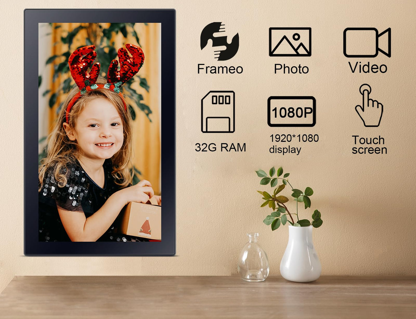 Q: What is the display resolution of the Frameo Digital Picture Frame?A: The Frameo Digital Picture Frame features a full HD display with a resolution of 1920x1080 pixels, providing clear and vibrant images.
