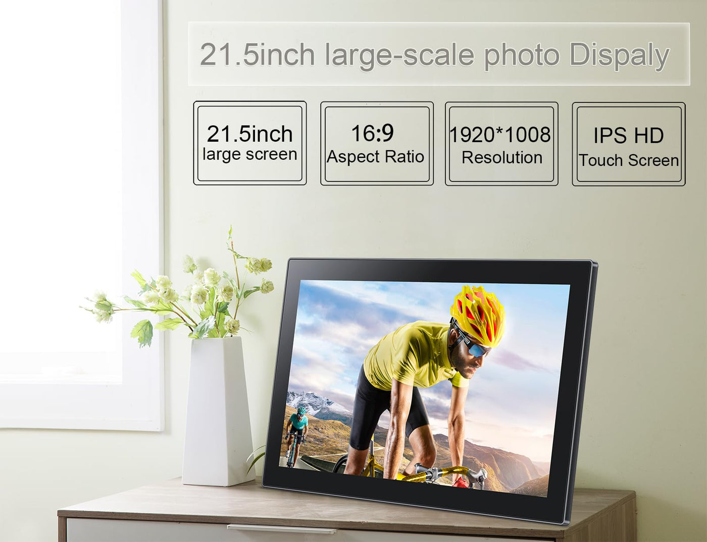 Frameo Digital Picture Frame With 1080P Ips Touch Screen Hd Disply,21.5 Inch Large Digital Photo Frame, 32Gb Wifi Frame With Swi