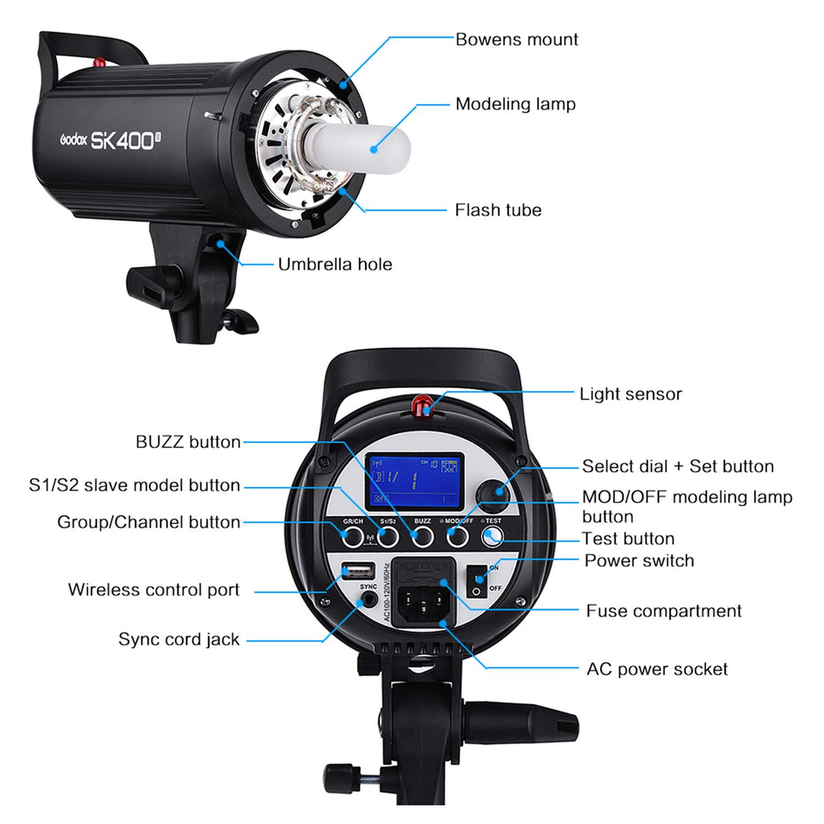 Specification:2 X Sk400Ii Studio Lightmax. Power: 400Wsguide Number: 65(M Iso 100)Color Temperature: 5600200Kvoltage: Ac 100-120V/60Hztransmission: 2.4Ghz Wireless Controlmodeling Lamp: 150Wsb-Bw 60X90Cm Softboxbowens Interface: Easily Attach To Bowens Mount Strobe Monolightsoft Diffuser: Come With 2 Layer Soften Diffuser Clothdimension: 60Cm X 90Cmxt-16 Transmitter:Easily Transmitter Sk400 2.4Ghz Wireless Strobe Flash2 X 2M 304 Light Stand:Height: 28 -78 Adjustablematerial Aluminumcome With Ub-002 33 Black/Silver Umbrella And Ub-004 33 Black/White Umbrellabd-04 Barndoor Kit For Creative Light Effectscb-04 Carrying Case For Easily Transport