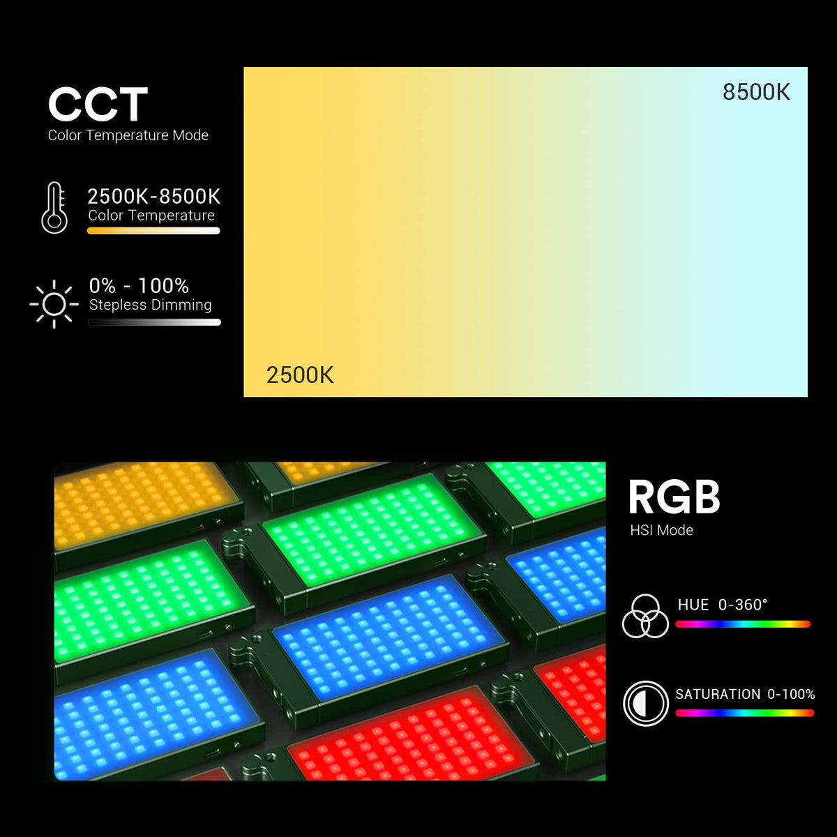 Q: What is the color temperature range of the Godox M1 RGB Mini Creative Light?A: The Godox M1 RGB Mini Creative Light has an adjustable color temperature range from 2500K to 8500K, allowing you to create the perfect lighting for any scenario.