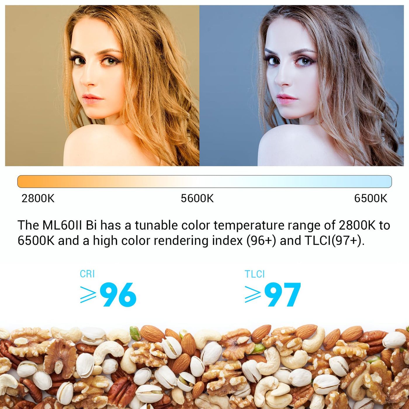 The Godox Ml60Iibi Led Light Has Been Upgraded From The Ml60Bi With A More Compact Size, More Power, More Brightness, More Beautiful Colors, And More Silence. This Is A Portable Handheld Led Light, Both For Studio And Outdoor Photography.