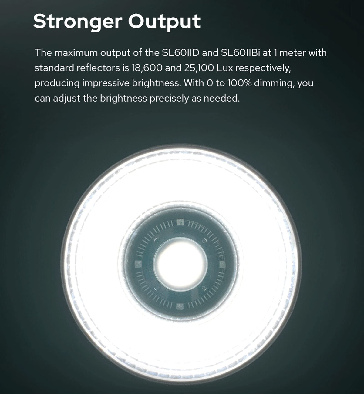 Q: What is the maximum output of the Godox SL60IIBI LED Video Light?A: The Godox SL60IIBI has a maximum output of 25,100 Lux at 1 meter with standard reflectors, providing impressive brightness for your video lighting needs.