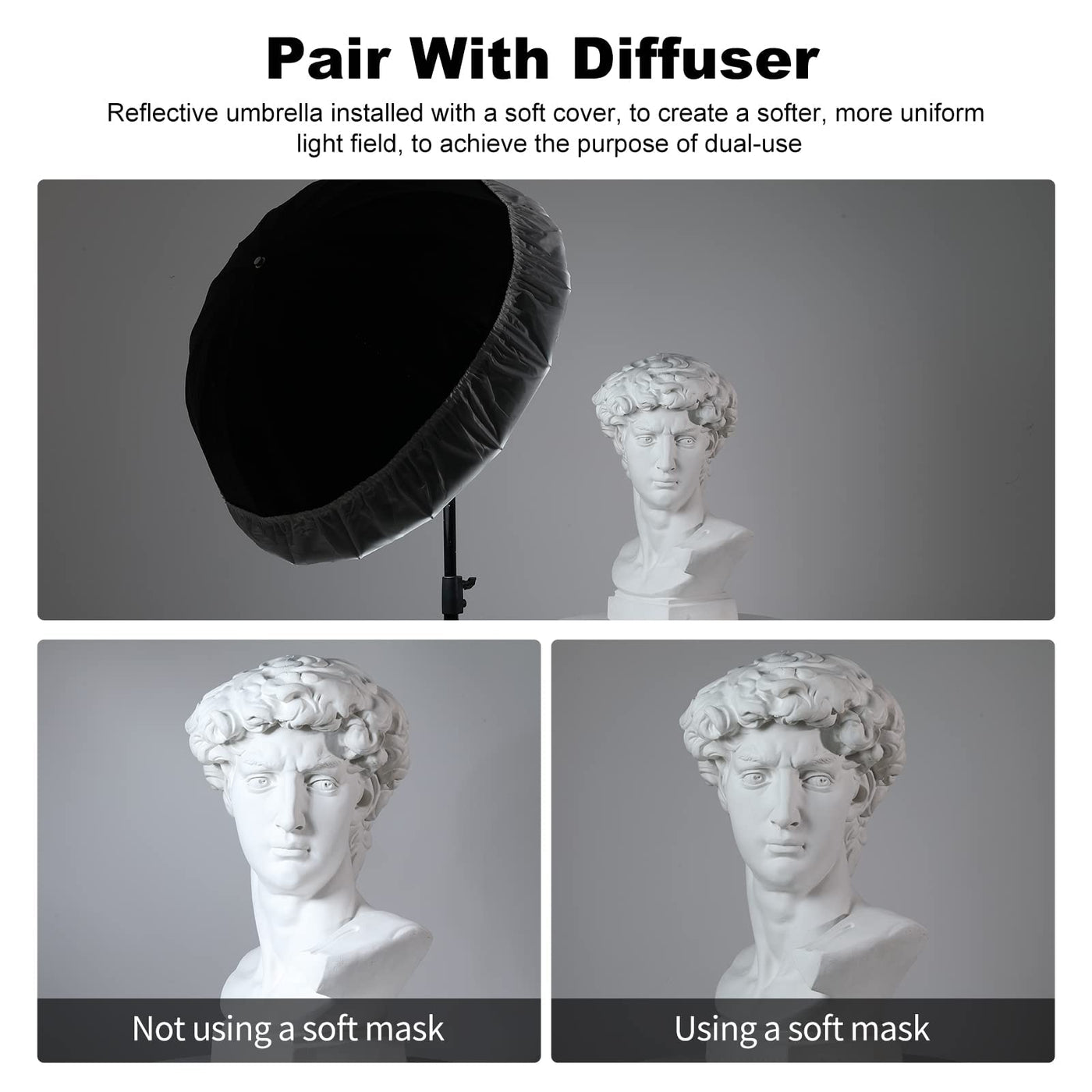 Q: What is the advantage of using a parabolic umbrella like the Godox UB-130S?A: The parabolic shape of the Godox UB-130S allows for precise control of light spread, enabling photographers to illuminate large areas with a single light source while achieving soft, even lighting effects.