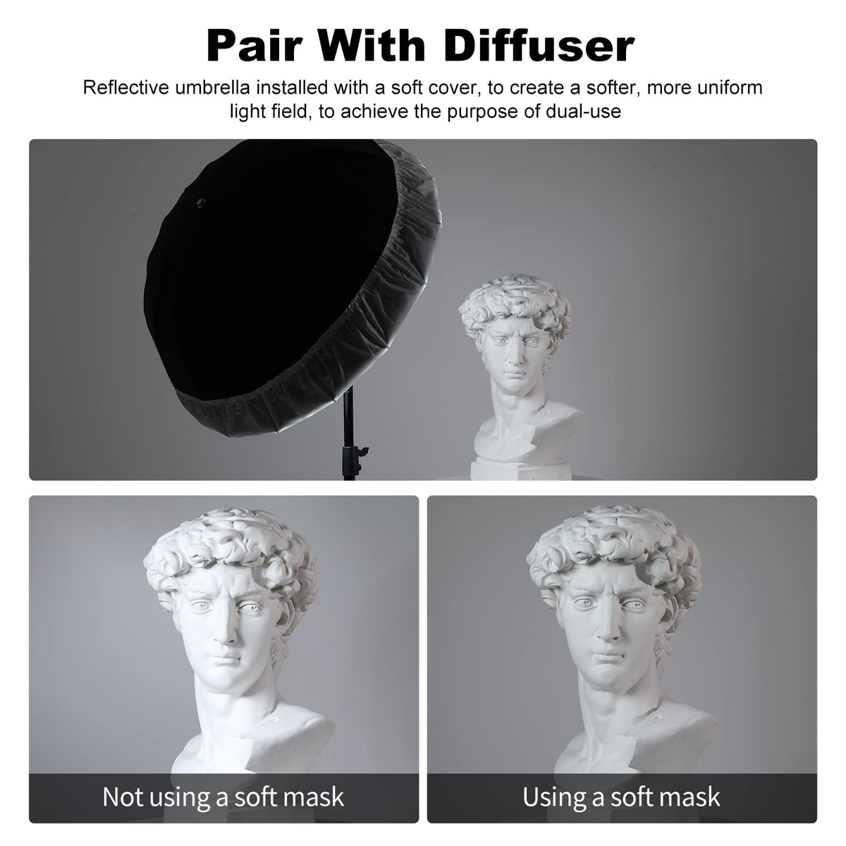 Classic Black-White Version- The Black And White Version Of The Parabolic Reflector Can Concentrate Light Effects On The Details Of The Object And Produce Natural Eye Catch Light. It Can Not Only Light Up The Object Being Photographed, But Also Facilitate Precise Control Of The Contrast And Saturation Of The Light Effect. It Is Suitable For Creating A Refreshing And Avant-Garde Shape. Use A Diffuser To Make The Light Effect Softer.