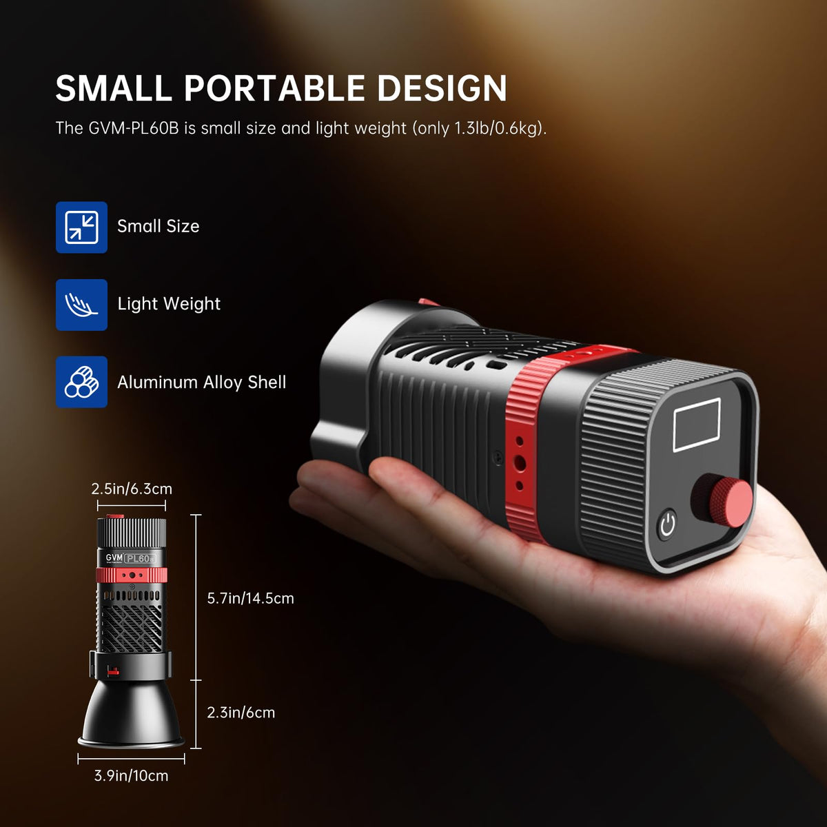 Q: Can the GVM PL60B be used for outdoor photography?A: Yes, the GVM PL60B is designed for outdoor use. It supports both AC and DC power supply options, including two NP-750 batteries, making it perfect for outdoor photography, camping, and events.