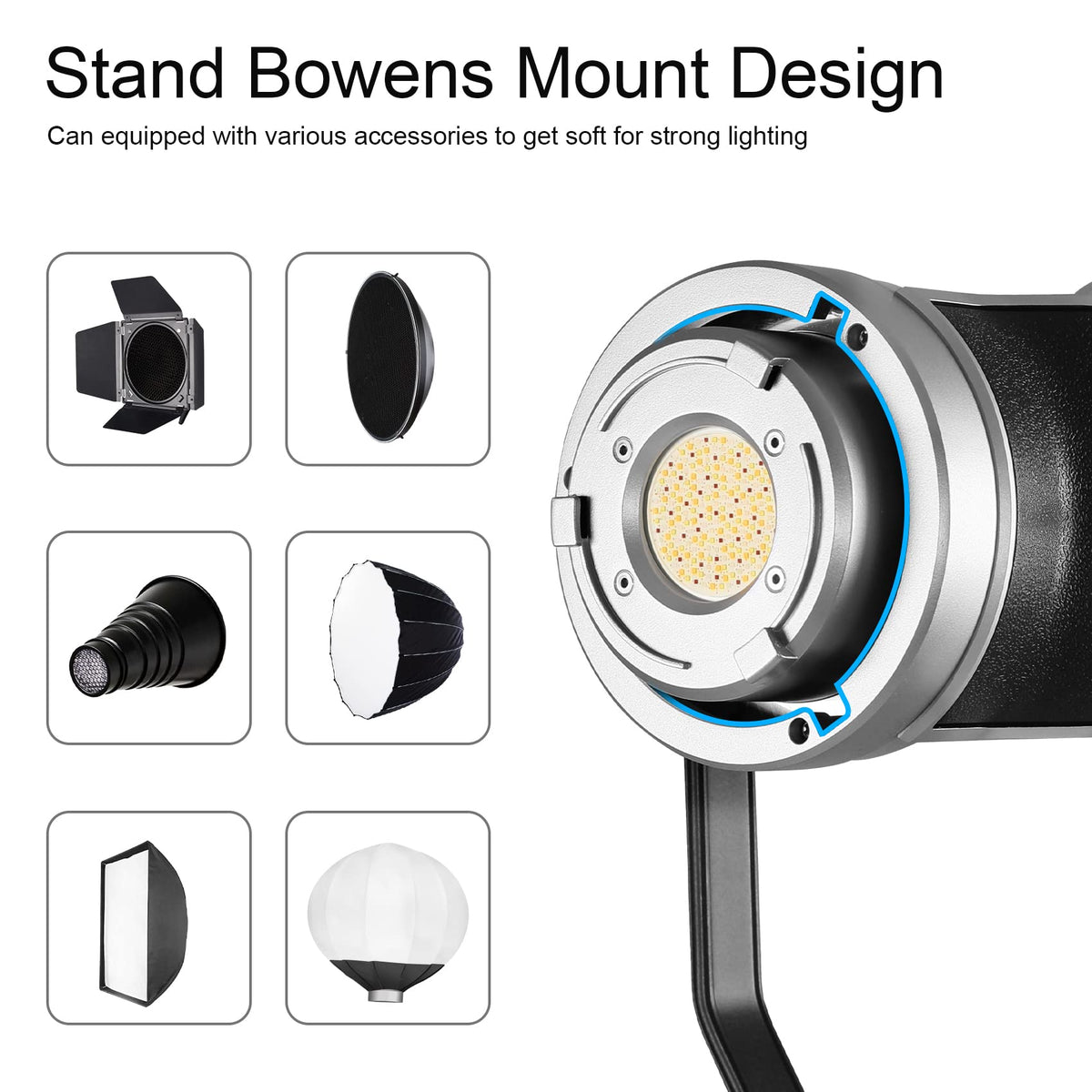 Q: What accessories are included with the GVM RGB Video Light Kit?A: The GVM RGB Video Light Kit includes essential accessories such as a Bowens mount softbox and a light stand, allowing for versatile lighting setups. Additional accessories like adapters and lampshades can be used to achieve different lighting effects.