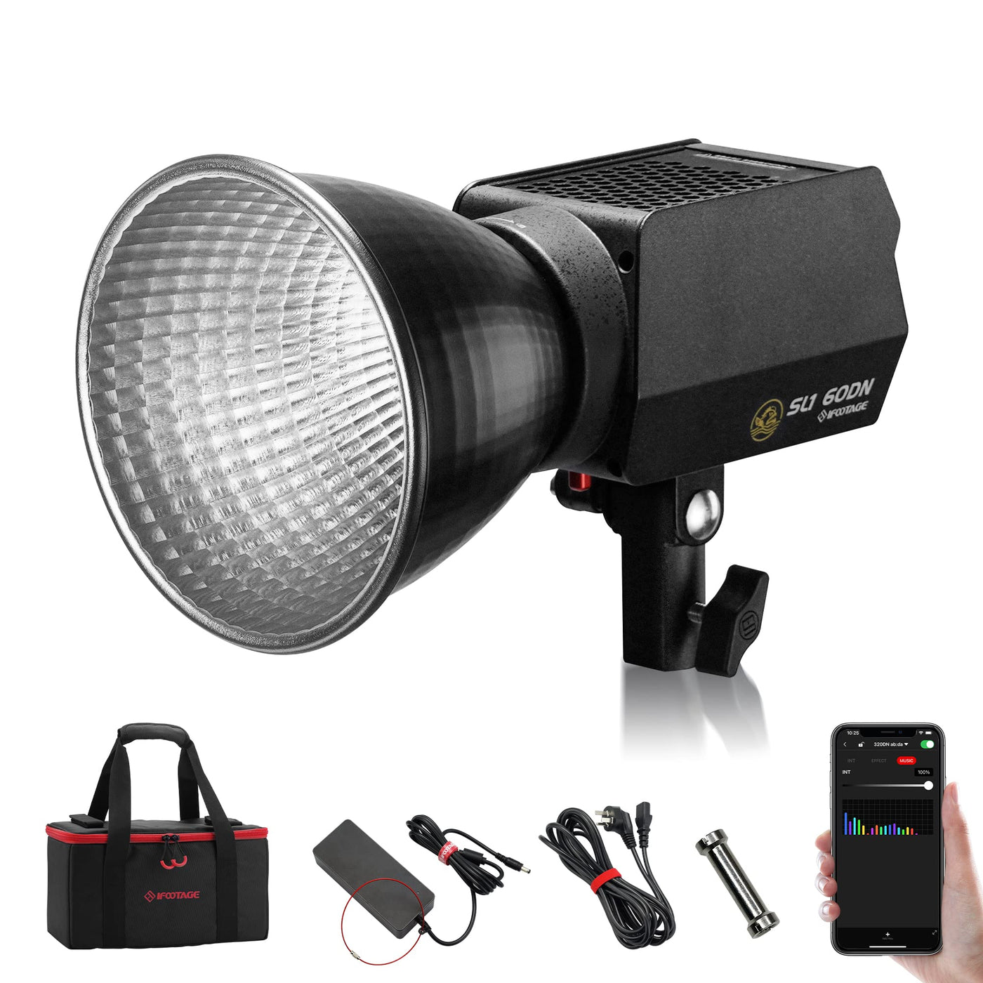 Q: What are the power options for the iFootage 60DN LED light?A: The iFootage 60DN continuous lighting can be powered through an AC adapter or a V-mount battery (sold separately), providing flexibility for both studio and outdoor environments.