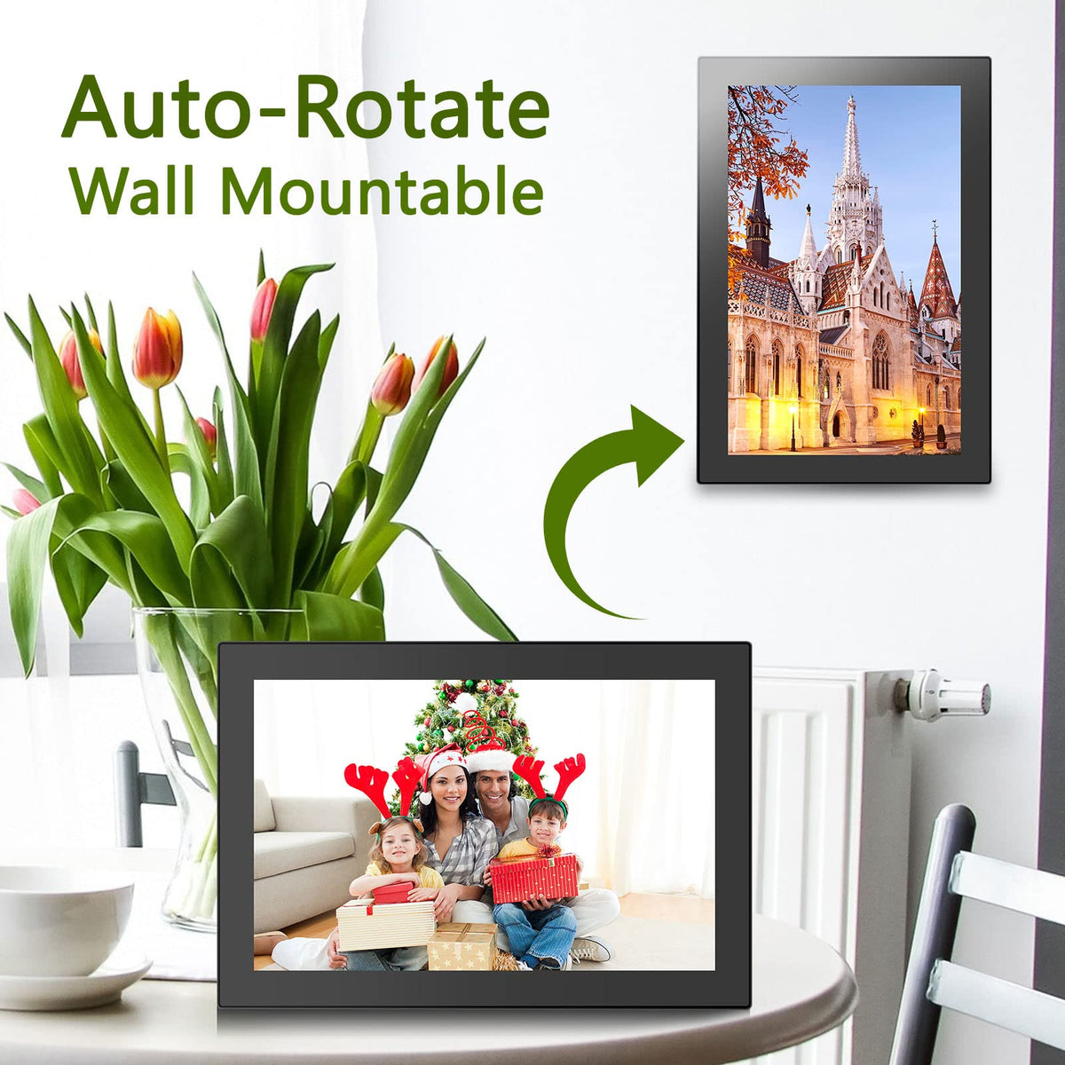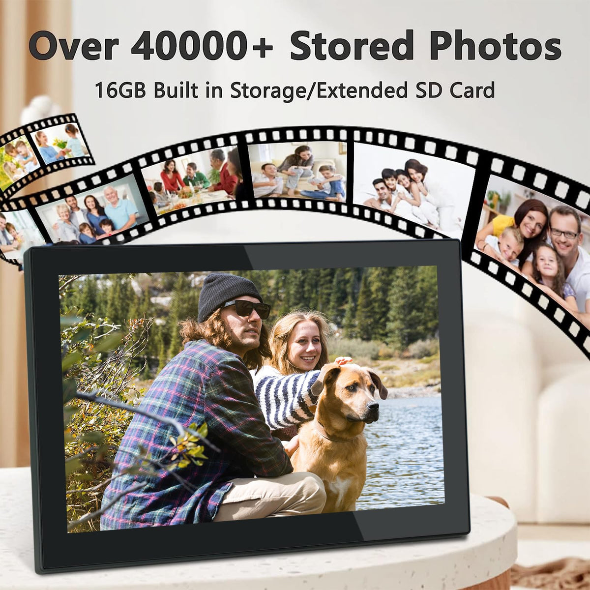 10 Inch Wifi Sharing Photo Video Digital Photo Frame ? Share And Stay Connected Wirelessly Easily Share Photos And Videos With Your Family Remotely Via The Frameo App For Your Smartphone. The Digital Photo Frame Will Receive Them Immediately. ? Large 10 Inch Digital Photo Frame With 1280*800 Ips High-Resolution Touch Screen, It Ensures You Display High Quality Images From All Angles. Auto-Rotate Setting Supports Your Better Viewing Experience And You Can Put This Frame In Portrait Or Landscape Mode. ? Built-In 16Gb Memory This Frame Provides You With Huge Storage Capacity With 16Gb Built-In Memory (About 40,000 Photos Of 300Kb/Photo). It Also Supports Sd Card And Usb Drive Connection, Enabling You To Read Files And Export Incoming Photos And Videos For Better Album Management. ?Perfect Gift This Digital Photo Frame Is The Best Gift For New Parents, Grandparents, Newlyweds, College Students Or Families Separated On Different Holidays, Such As Birthdays, Anniversaries, Mother'S Day, Father'S Day, Thanksgiving, Christmas. Included Items: Digital Photo Frame, Charger, Manual Color: Black