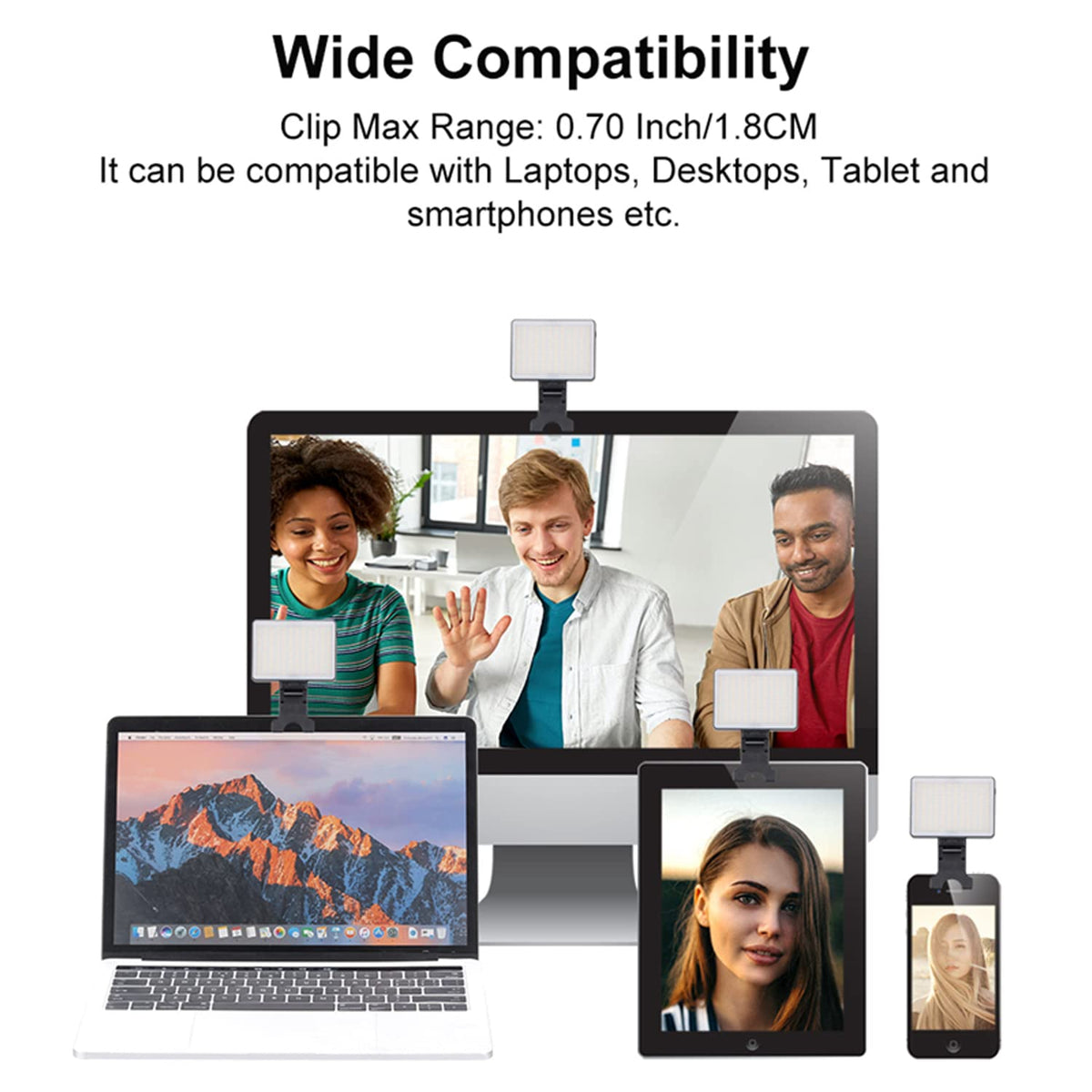 Q: Is this selfie light compatible with laptops and tablets?A: Yes, the King Ma Portable Selfie Phone Light is compatible with various devices, including MacBook, iMac, iPads, and most desktop or laptop computers. It features a USB charging port for easy connectivity.