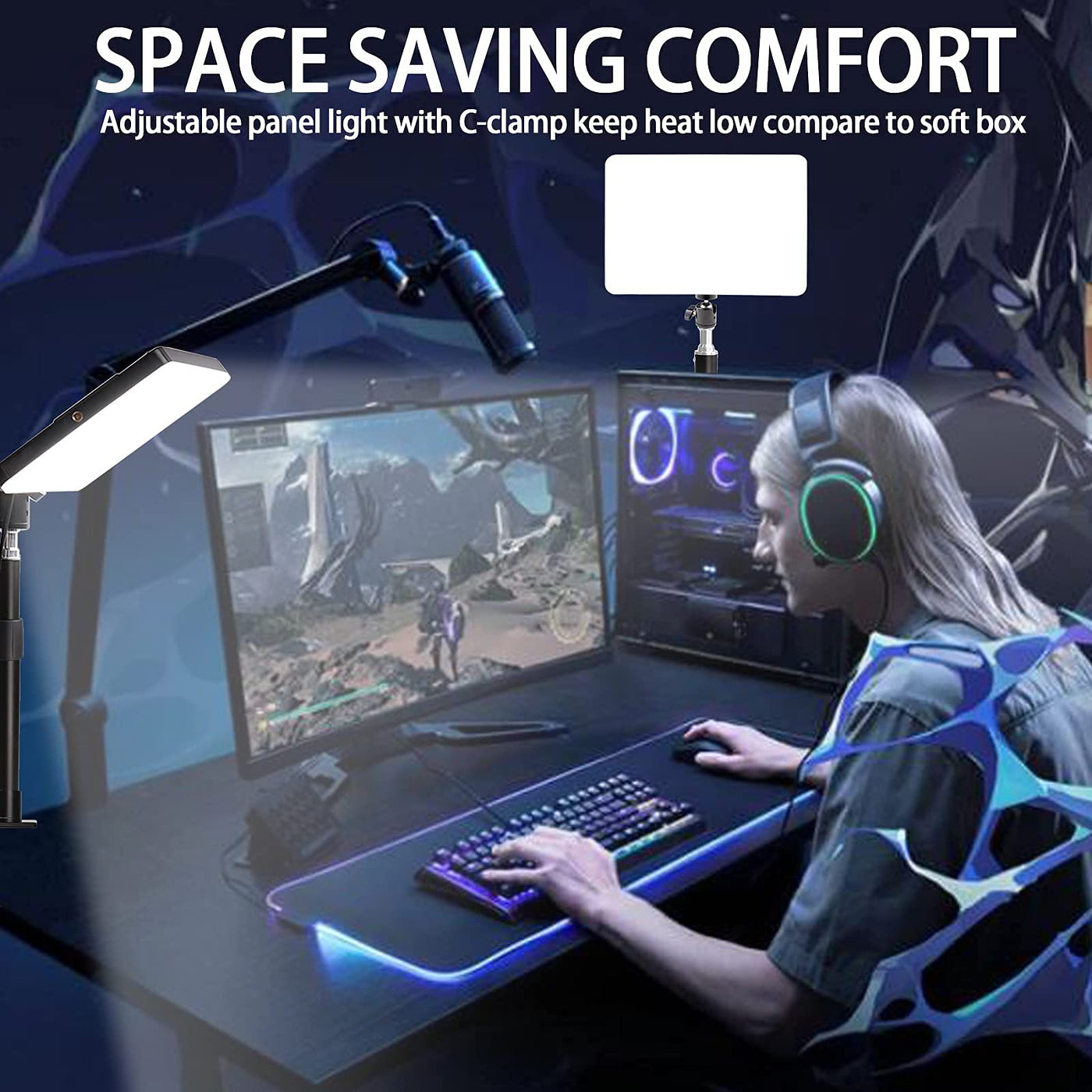 Led Lighting Kitthis Lighting Kit With 9.2 6.1In Panel Light And Desk-Mounted Light Stand Gives You High Light Output, Low Energy Consumption, And Soft Lighting Thats Provides Perfect Lighting Conditions For Make Up, Artistic Photo Photography, Take Selfie, Portrait Photography, Live Webcast, Video Shooting And Game Streaming.Slim & Brightthe Led Light Offers Bright Continuous Light While Maintaining A Low Profile At Home Or In The Studio. Its Suitable For Twitch Or Youtube Game Streaming Setup. A Simple Yet Powerful Home Studio Lighting Solution.Sturdy & Secure Mountingthe Clamp Of The Desk-Mounted Light Stand Is Adjustable From 0.4 /1Cm To 4.7 /12Cm. Securely Mount The Light To Your Desk And Adjust The Lighting Angle To Wherever You Want.Customizable Lightinguse The Remote Control To Adjust The Brightness And Color Temperature To Get The Right Light You Need. Choose Between Warm White Or Cool White Light With A Desired Lighting Intensity.Specifications:Bi-Color Led Video Light: 9.2 6.1Incolor Rendering Index (Cri): =95Color Temperature: 2700K/5600Kdimming Range: 1%-100%Number Of Leds: 240Pcsbeam Angle: 180Weight: 3.15Lb / 1.42Kgc-Clamp Adjustment Range: 0.4 -4.7 / 1Cm-12Cmstand Adjustment Height: 13.7''-23.4''/ 34.8Cm-59.4Cm (High-Strength Aluminum Alloy Material)Remote Control Battery Type: 2 Aaa Batteries (Not Included)Package Includes:1X Led Panel Light1X C-Clamp Desk Mount Light Stand1X Remote Control1X 360 Ball Head