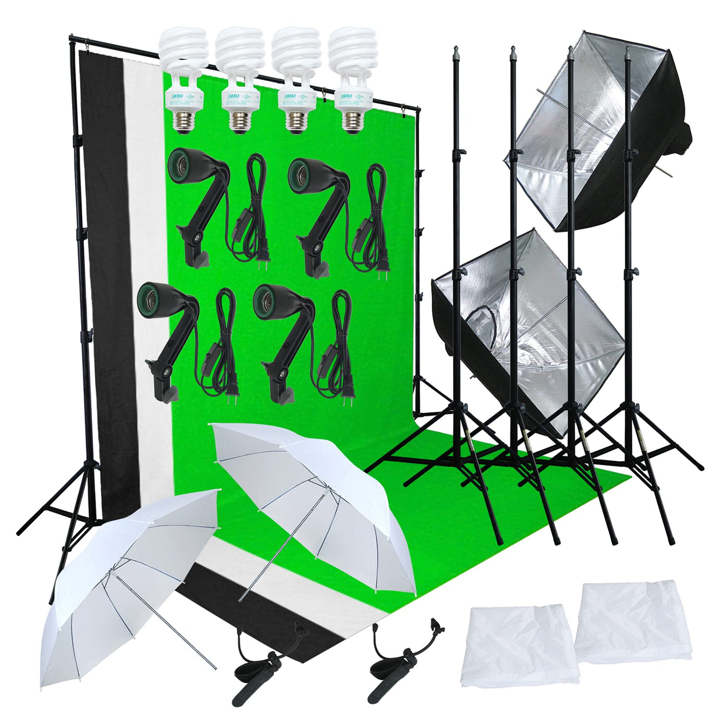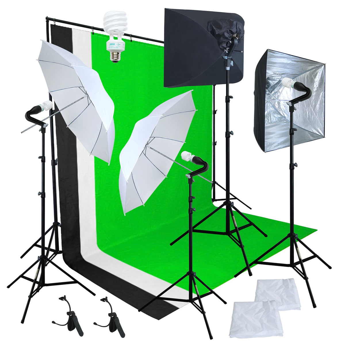 Linco Pheno Studio Lighting Studio Softbox Umbrella Reflector (3 In 1) Photography 9X10 Feet Backdrop Stand Kit With 3 Color Muslin & Clamps