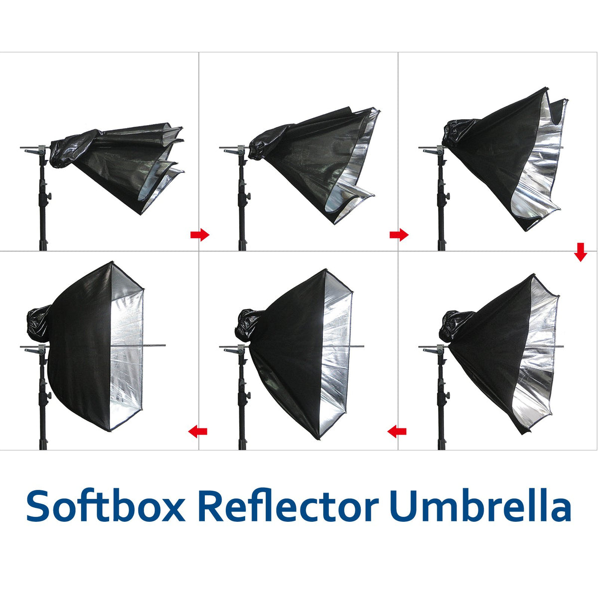 2 X Linco#3402-2 24&Quot; Photography Studio Pheno Square Silver Umbrella Reflector Softbox - 3 Functions In 1: Softbox, Reflector, Umbrella (With A Diffuser) - Umbrella-Style Softbox: Easy To Assamble