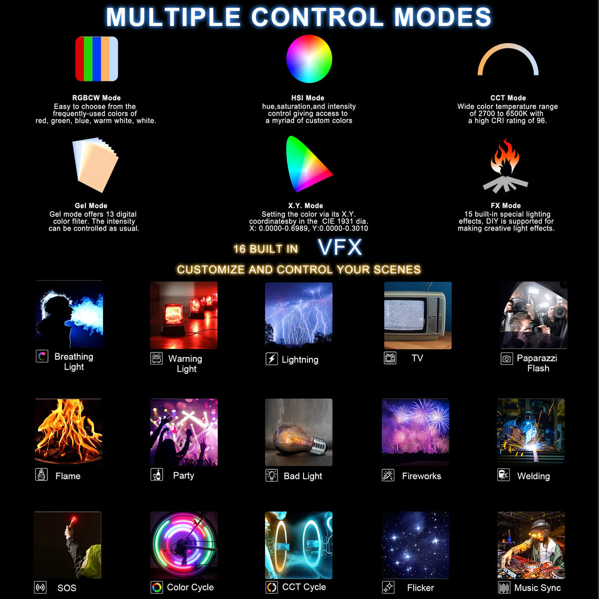 Q: What are the color temperature options available with this light?A: The LUXCEO P120S supports a wide color temperature range from 2000K to 10000K, enabling you to create various lighting effects suitable for different environments.