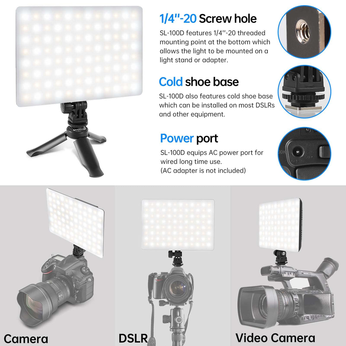 Mettlelite Sl100D Led Video Light Bi Color On Camera Continuous Dimmable Photography Lighting Portable Studio Led Panel 3200K 56