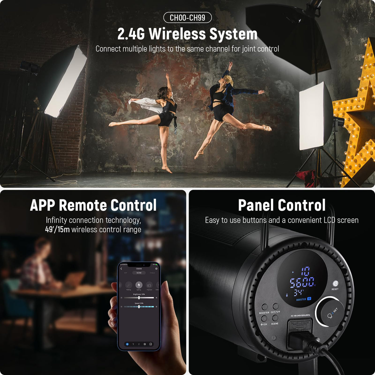 Neewer Cb200 Cob Led Video Light Has 210W Output, 98500Lux/1M Illuminance, 5600K Daylight, Cri97+/Tlci97+, And 0-100% Pwm Dimming-A Continuous And Bright Light Source For Studio Photography, Filmmaking, Video Recording, Live Streaming, And Interviewing. 9 Real Life Simulated Scene Effects Can Make Your Videos More Convincing. The Light Body Is Equipped With A Silent Fan For Efficient Heat Dissipation And A Bowens Mount For Endless Light Modifiers. You Can Control The Light With Its Control Panel And Our Neewer App Or Use The 2.4G System For Network Meshing. Specifications Model: Cb200 Item Type: Led Video Continuous Light Compatibility: Bowens Mount Accessories Application: Portrait Photography Video Main Features: App/2.4G Control Mounting Points: Bowens Mount Main Material: Aluminum Alloy Maximum Power: 210W Maximum Illumination: 98500Lux/M Color Mode: Daylight Color Temperature: 5600K Special Scene Effects: 9 Cri/Tlci: 97+ Cob: V App Wireless Control: V 2.4G Wireless Control: V Dimensions: 15.7''X8.1''X7.9''/400X205X200Mm Weight: 6.2Lb/2.8Kg Package Contents 1 X Led Video Light 1 X Standard Reflector 1 X Protective Cover 1 X Power Cord 1 X User Manual