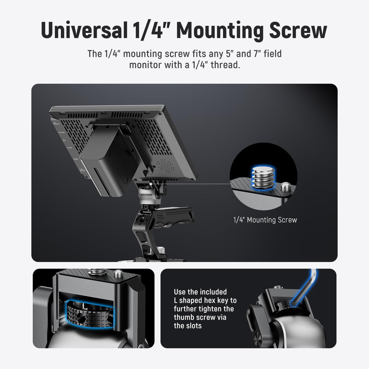 Neewer Color Blocking Camera Monitor Mount With Cold Shoe, Anti Twist 1/4'' Screw, 360 Swivel 180 Tilt Damping, Compatible With