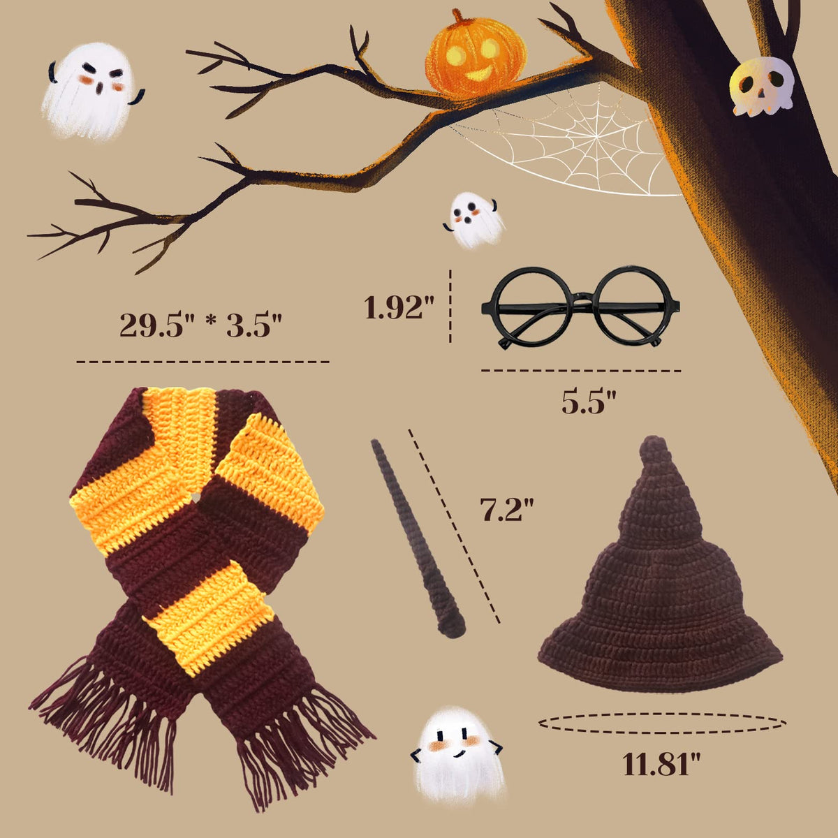 Newborn Photography Props Crochet Wizard Hat Magic Scarf Wand Glasses Frame Halloween Baby Costumes Cosplay Set Baby Photoshoot Props Magic Novelty Themed Baby Photo Props Halloween Cosplay Supplies Newborn Photography Props Halloween Wizard Witch Hat Scarf Wand Glasses Frame 4 Pcs Set Crochet Baby Photo Prop Halloween Baby Photoshoot Props Halloween Magic Party Cosplay Set Baby Shower Gift