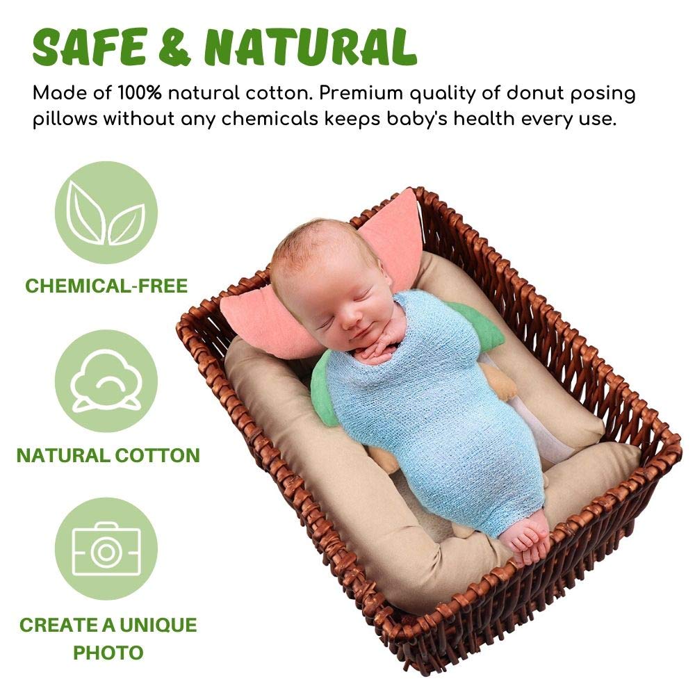 Main Features: ? [Ultra-Soft] The Donut Posing Pillows Is Mix Of Firm And Soft , Clean And No Weird Odors, Feel Smooth With Every Touch, Suitable For Baby Dedicate Skin. ? [Safe &Amp; Natural] Made Of 100% Natural Cotton. Premium Quality Of Donut Posing Pillows Without Any Chemicals Keeps Baby'S Health Every Use. ? [Perfect Phootshoot Set] This Set Includes A Round Pillow And 5 Additional Small Pillow, Complement The Little Pillows Are Perfectly Filled For Support, And The Round Shaped Pillow Is Flexible Enough To Help Achieve A Variety Of Newborn Poses. ? [Easy To Use] This Product Is Perfect For Newborn Pictures. Provides Comfort And Ability To Prop In A Variety Of Ways So The Comfortable For Photographers Of All Skill Levels! ? [Create A Unique Photo] Drape Blankets, Scarves, Or Color D Cor Over The Pillows Or Add Backdrop Items To Create Beautiful, Give Your Lovely Baby Free And Unbound Feeling To Record Baby And Shoot Memorable Photo. Specifications: ?? Weight: 12.3 Oz ?? Filling:Stretch Cotton ?? For Age: 0-6 Months ?? Dimension:-Longest Pillow (Length): 42 7/8''-Pink Pillow&Nbsp;(Length): 8 3/4''-Green Pillow&Nbsp;(Length): 7 1/2''-Brown Pillow&Nbsp;(Length): 5 7/8''-Blue Pillow&Nbsp;(Length): 4 3/4''-Smallest Pillow&Nbsp;(Length): 3 3/4'' Package Contents: ??1 X Donut Posing Pillow; ??5 X Different Crescent Pillows;(Basket Not Included)