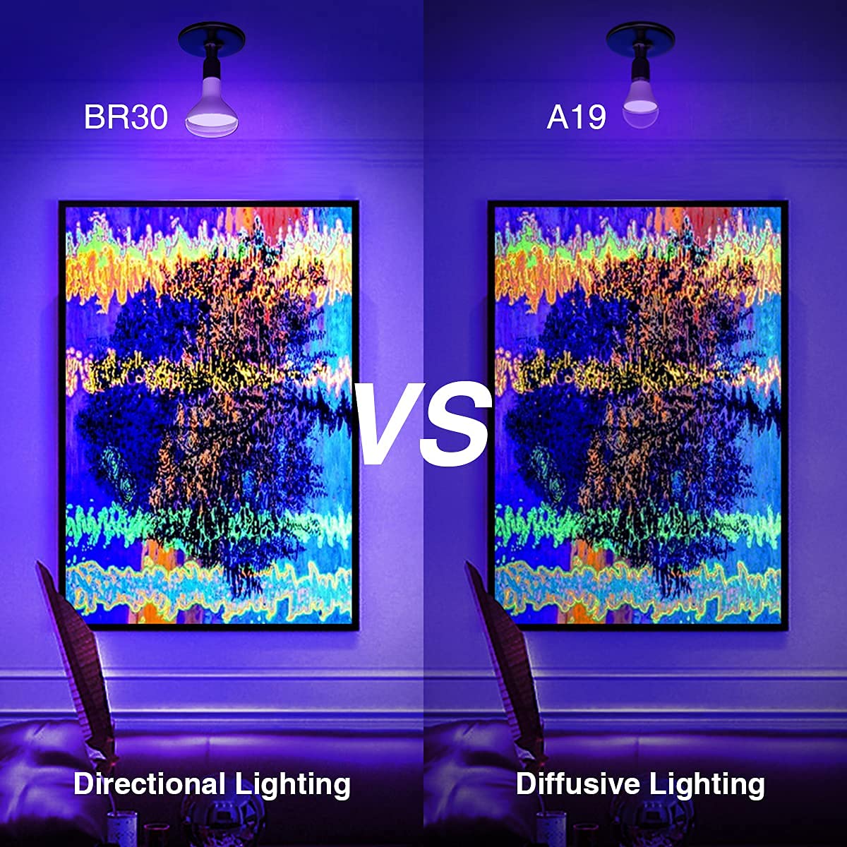 Onforu 2 Pack 120W Equiv Led Black Light Bulb, Br30 E26 Blacklight Bulbs For Glow In The Dark, 385 400Nm, 15W Black Light Flood