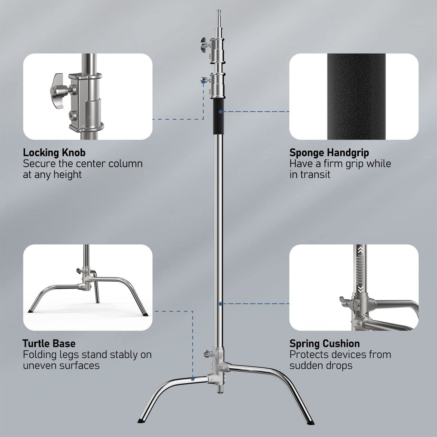 Photography C Stand With Boom Arm: 100% Stainless Steel Takerers Bs10 Heavy Duty Max Height 10.5Ft/131Inch Light Stands (1 Pac