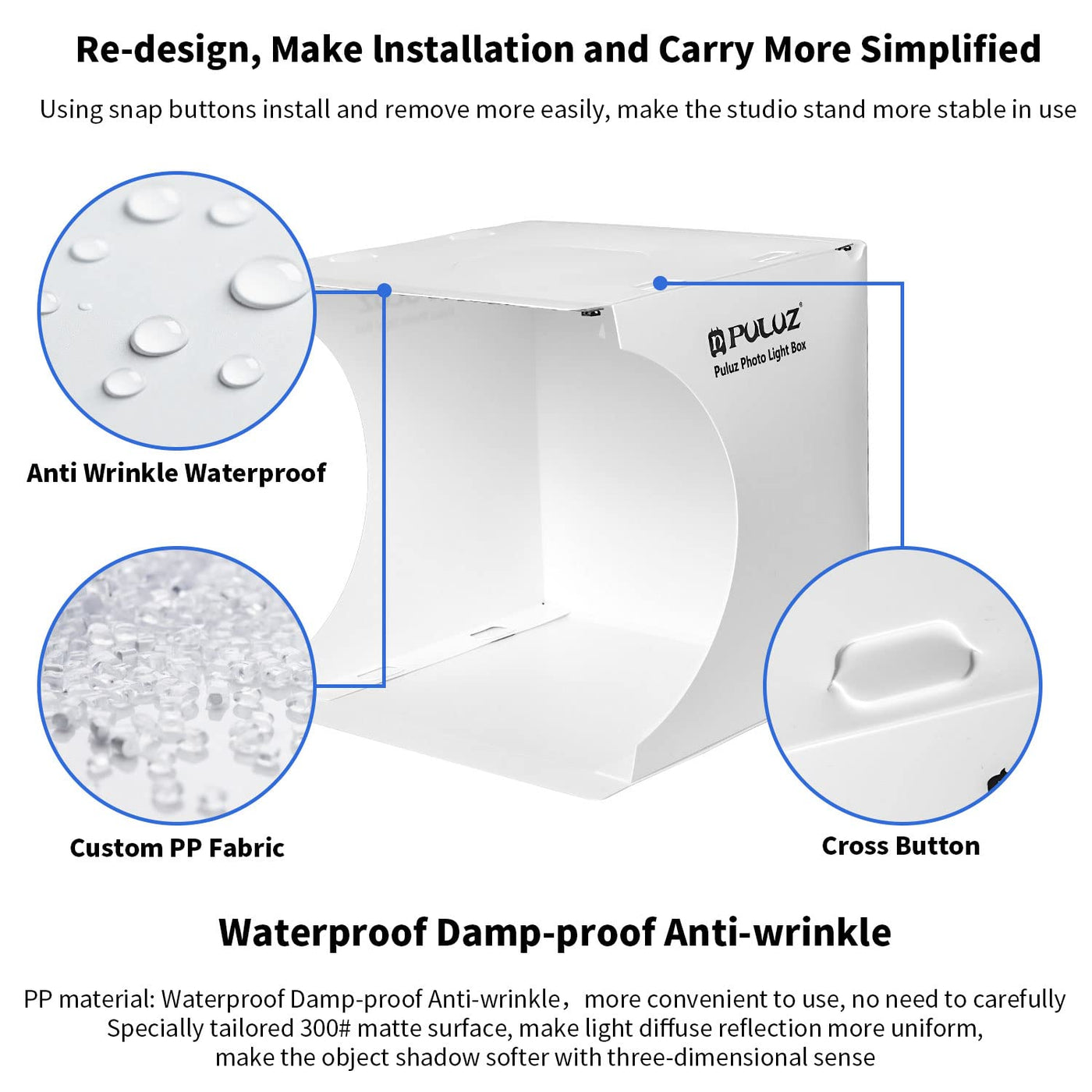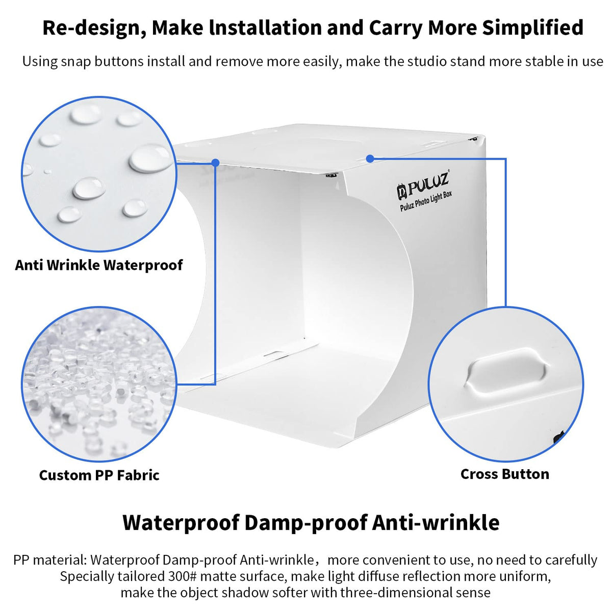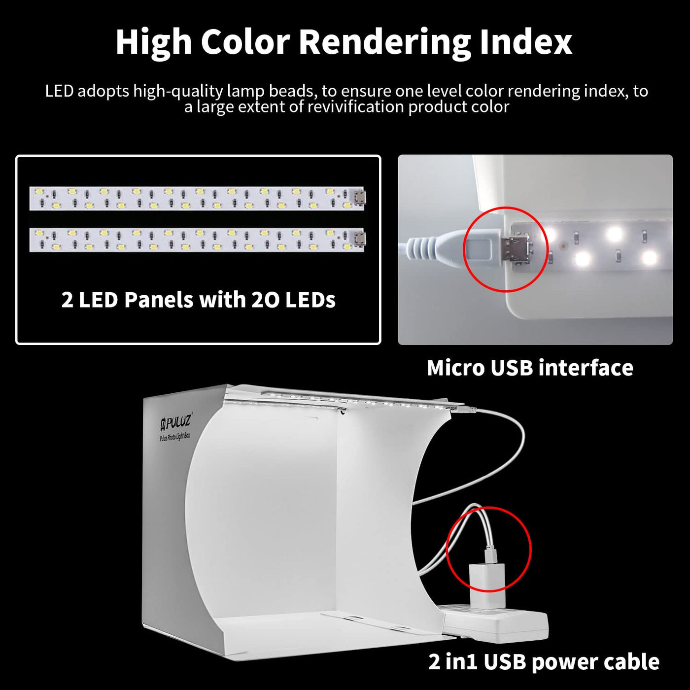 Features: 1. The Photography Light Box Is Designed For Small Items Of Photography Enthusiasts, Crafters, Artists, Etsy Sellers And Other Online Sellers, Professionals And Product Advertising Clients. 2. Light Box Studio Allows Quick And Easy Shooting Of Small Products Such As Jewelry, Accessories, Toys, Watches, Gadgets And Other Items. 3. Assemble Your Own Photo Studio Anywhere In Minutes, You Can Unfold This Led Lightbox Studio And Place It On Any Surface To Get The Perfect Backdrop For Small Articles Business Photography, Taking Pictures For Products. 4. Portable Folding Magnetic Circuit Structure Design, More Convenient To Install And Carry, Built-In Led Light, Providing Average Light And Prevents Shadows And Reflections In Your Photos. 5. With 6 Backgrounds Pads, And Build-In Light And Usb Cable (You Should Prepare A Usb Charger To Power It.). 6. Power Supply: 5V, 1A (Not Support The Usb Power Output Voltage More Than 5V, Such As Quick Charge). Package List: 1. Main Studio Box(With 2 Led Panels, 20 Leds In Each Panel) X 1 2. Soft Bag X 1 3. Black Backdrops X 1 4. White Backdrops X 1 5. Yellow Backdrops X 1 6. Red Backdrops X 1 7. Blue Backdrops X 1 8. Green Backdrops X 1 9. 2 In 1 Micro Usb Cable X 1 10. User Manual X 1