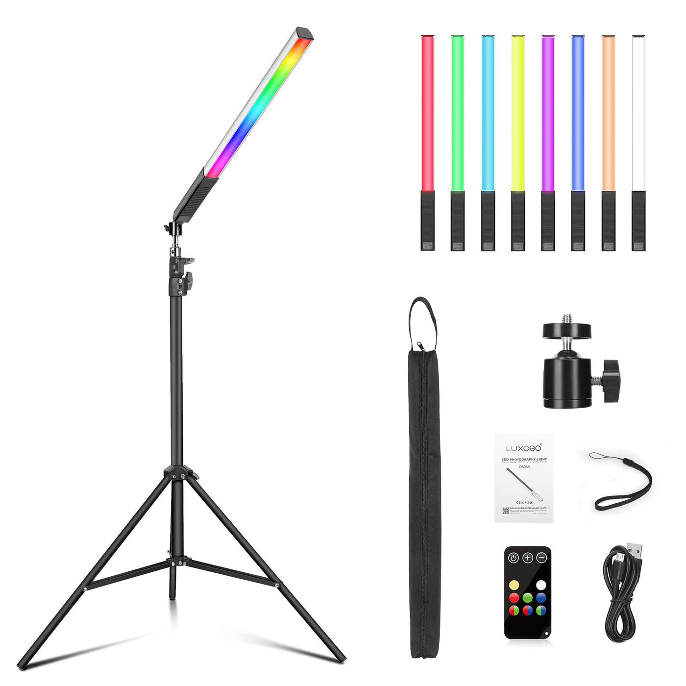 Rgb Led Video Light Wand, Luxceo Dimmable Led Photography Light Stick With 29'' To 81'' Light Stand & Ball Head, Photography Stu