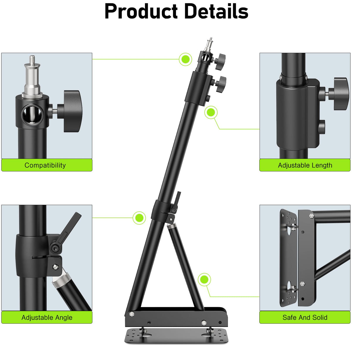 Q: How adjustable is the length of the wall mount boom arm?A: The wall mount boom arm can be adjusted from 75cm to 130cm (29.5 inches to 51.2 inches), allowing you to customize the length based on your specific photography needs and space requirements.