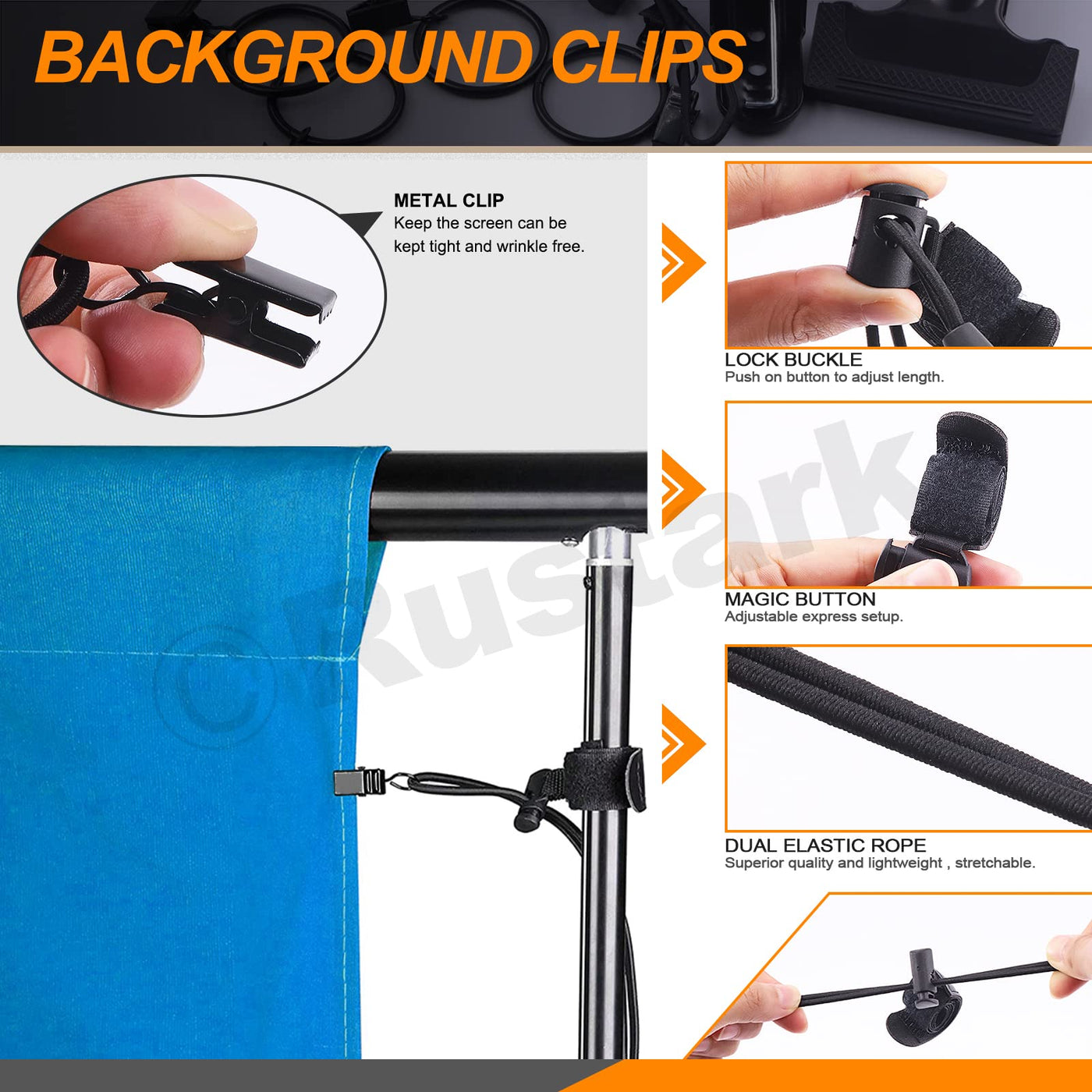 Rustark 22Pcs Backdrop Heavy Duty Spring Clamps Elastic Photo Clips Holder Clips Assortment Kit W Curtain Clips Backdrop Rings M