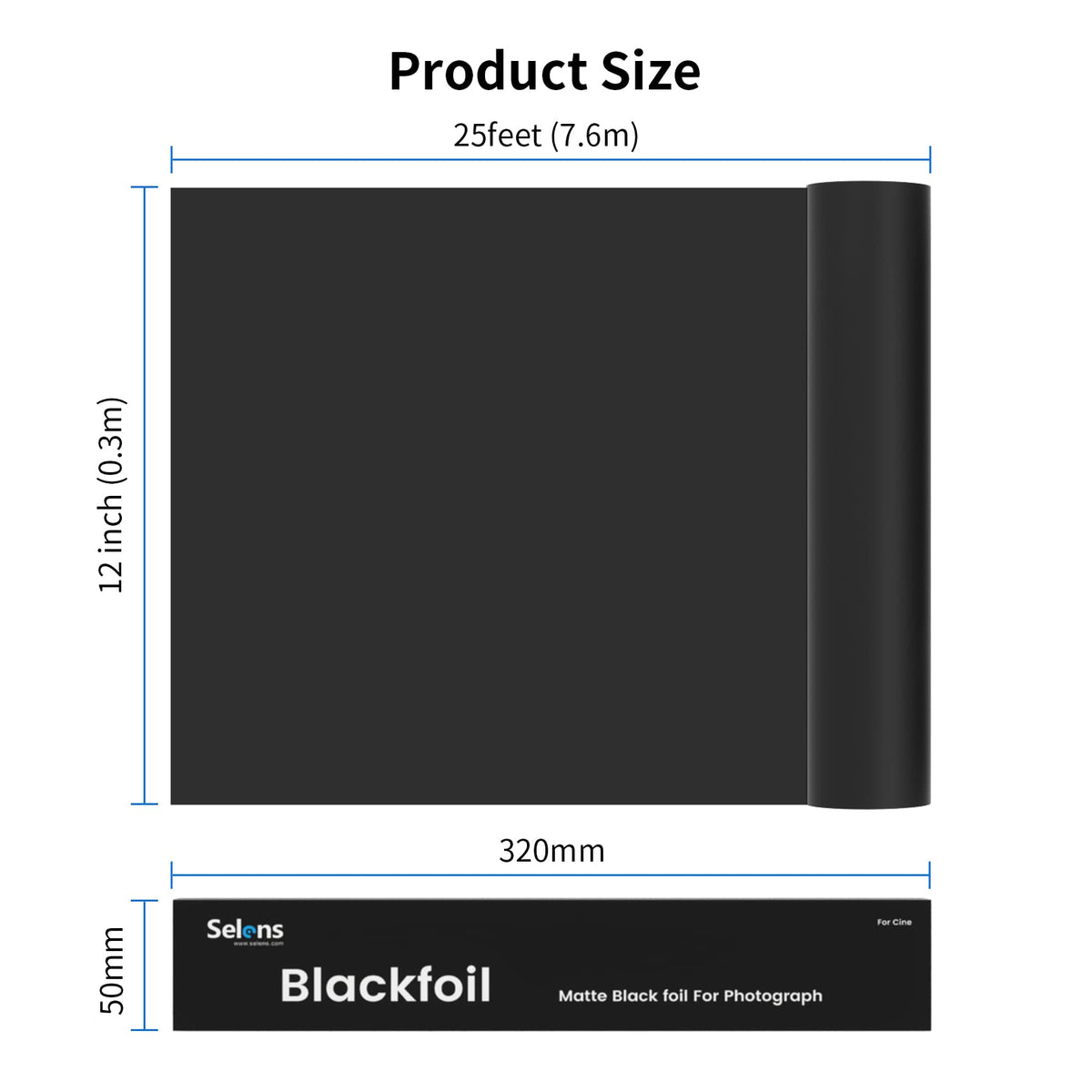 Selens Matte Cinefoil 12Inch X 25Feet Roll, Blcakfoil For Photograph Shaping Light & Masking Light Leaks