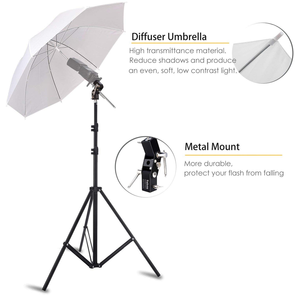 Selens Photo Umbrella Kit 33''/84Cm White Soft Umbrella With Light Stand And Metal Flash Bracket Mount For Portrait Photography