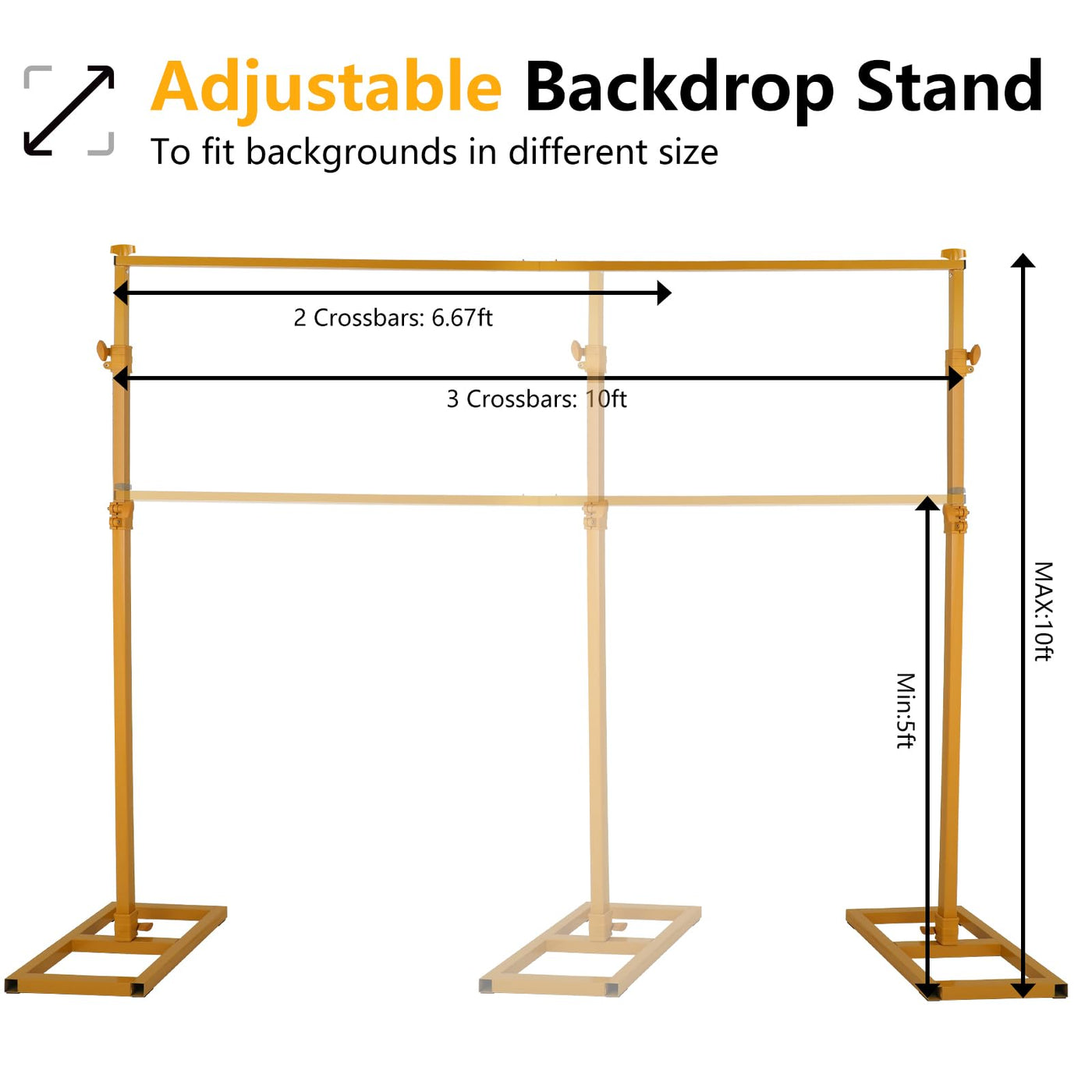 This Heavy Duty Metal Base Is Crafted From Premium Iron, Ensuring Exceptional Durability. Its Large Contact Area And Weight Provide Stable Support, While The Flat Design Prevents Exposure. The Adjustable Size Allows For Easy Customization, Ranging From 5Ft To 10Ft In Height. With A Thicker Iron Pipe Frame, It Offers Additional Stability And Can Hold Up To 44Lbs. Assembly Is Quick And Hassle-Free, Taking Only 5 Minutes Without The Need For Tools. Perfect For Various Applications Such As Photography Shooting, Weddings, Parties, And More, This Backdrop Stand Is Versatile And Reliable