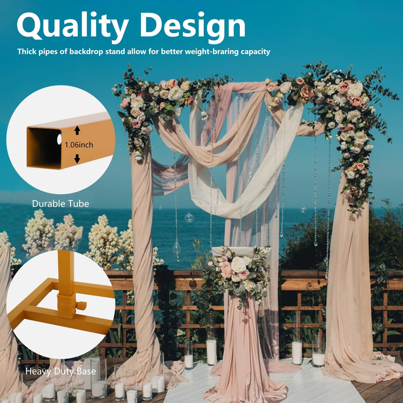 Showmaven Backdrop Stand, 10X10 Ft Heavy Duty Pipe And Drape Stand, Adjustable Gold Backdrop Stand For Wedding, Birthday Party,