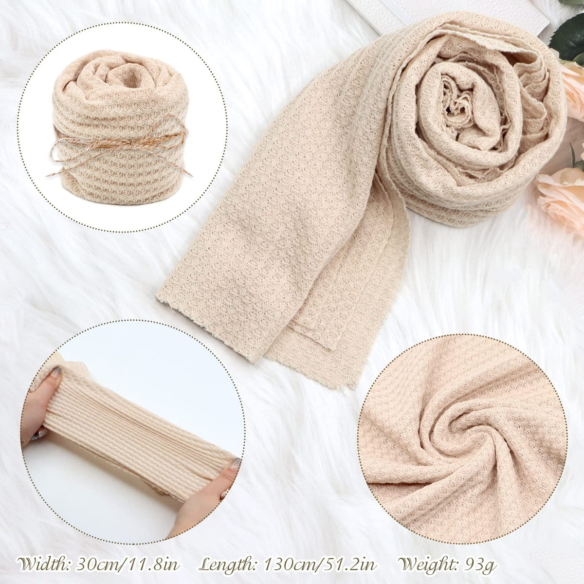 Spokki 3 Pcs Newborn Photography Props Outfits Set, Knitted Blanket For Baby Photo Props, Beige Elastic Wrap For Photoshoot, Flo