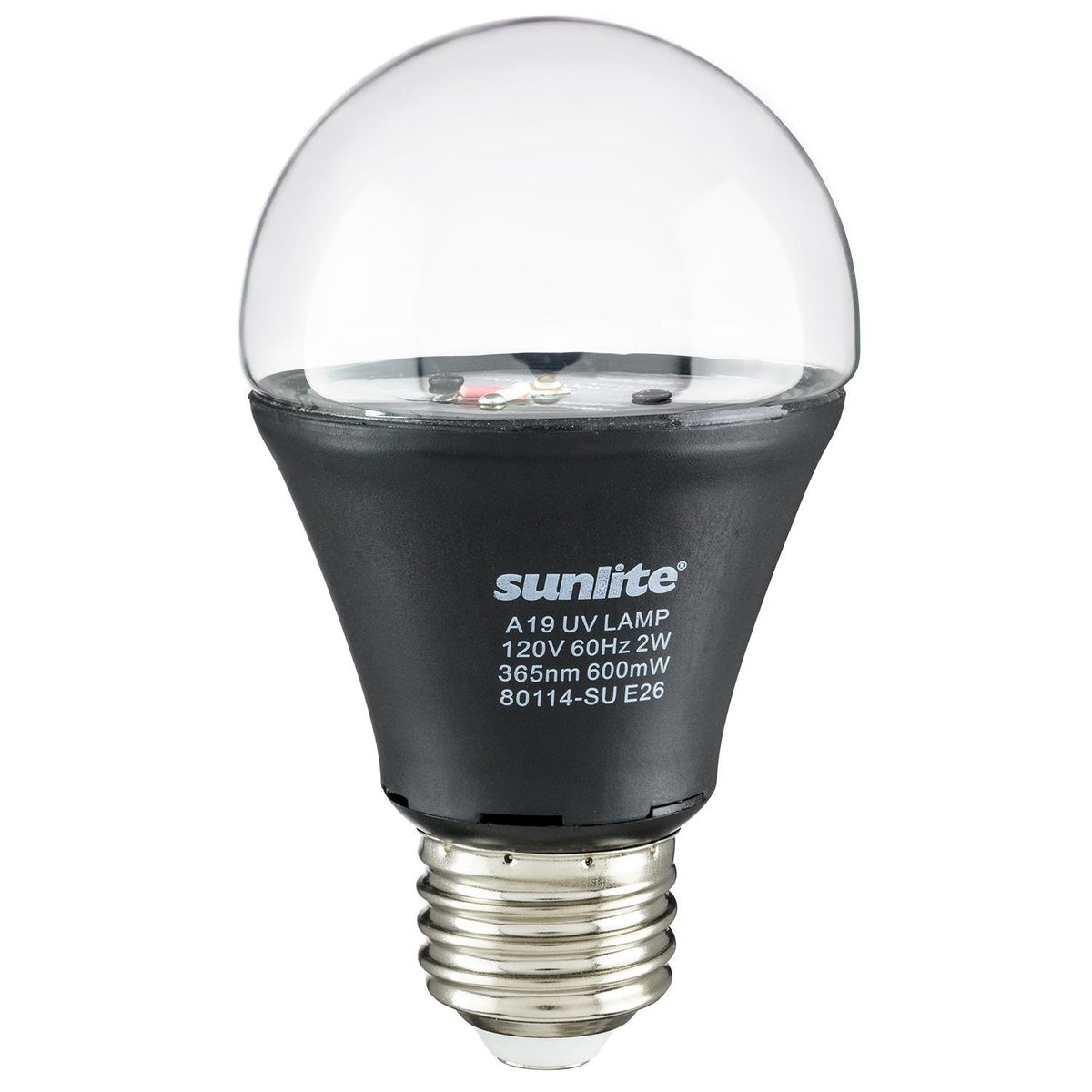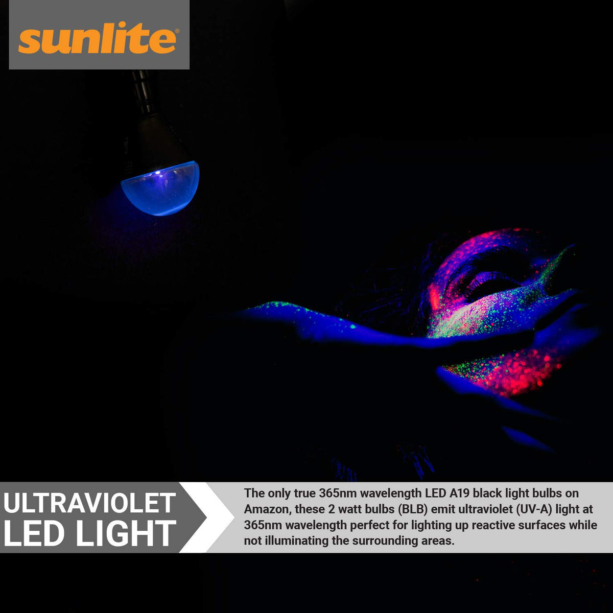 Sunlite 80114 Su Led A19 Black Light Bulb, 2 Watt, Medium Base (E26), 365Nm Wavelength, Glow Parties, Blacklight Blue, Decoratio