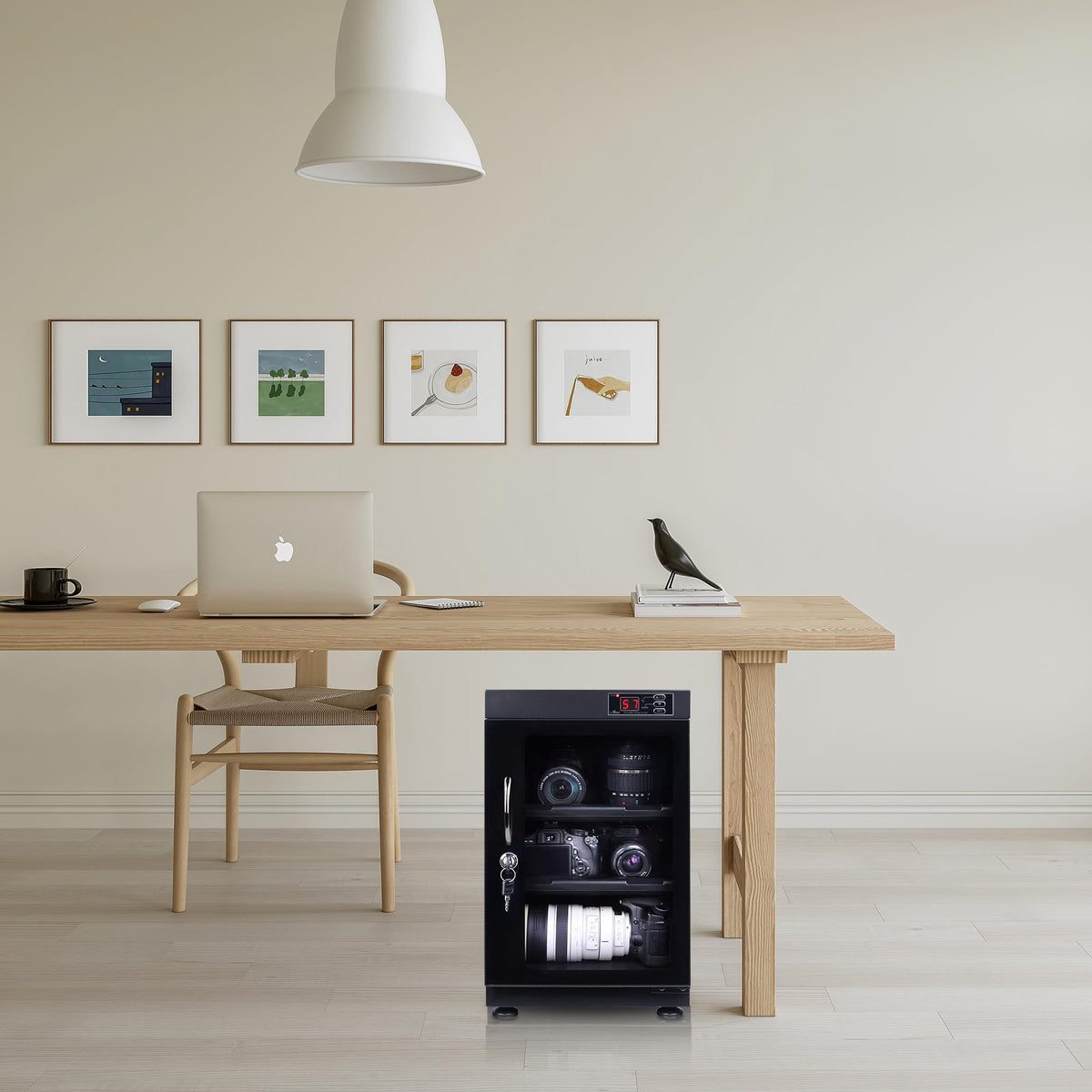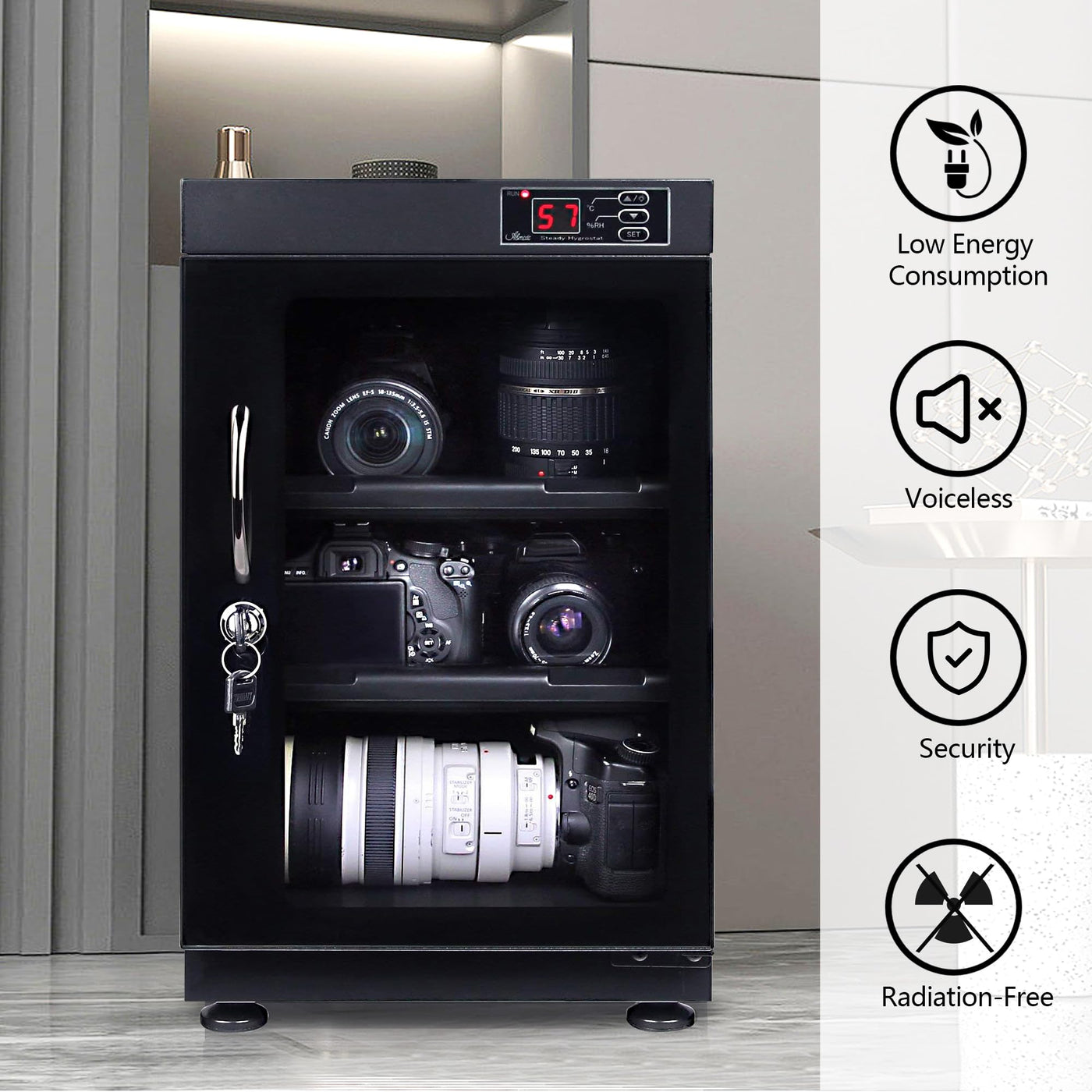 Features:Condensation Drying System Keeps Your Favorite Dslr Camera Lens, Stamps From Humidity And Degradationautomatic Control The Humiditydigital Displayadjustable Shelf Design Toughened Glass Door With Keyssoft Led Light Of The Inner Cabinet Tips:Please Make The Machine Idling For One Night, When Confirmed The Humidity Was Dropped And Then Put The Preserve Items Into The Cabinetnotice:When It Is In The Process Of Operation, The Equipment Will Be A Little Fever On The Back Which Is Quite Normal Please Do Not Put It In The Place Where Air Condition Can Blow It Directly