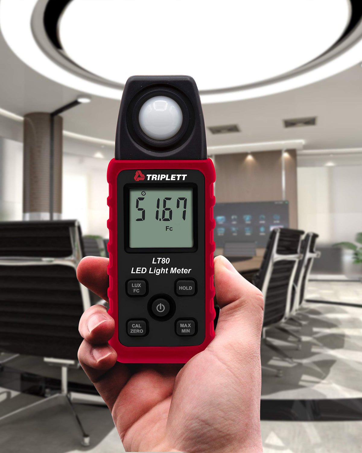Q: What types of light sources can the Triplett LT80 measure?A: The Triplett LT80 can measure light intensity from various sources including white LED lights, fluorescent lights, metal halide, high-pressure sodium, and incandescent lights.