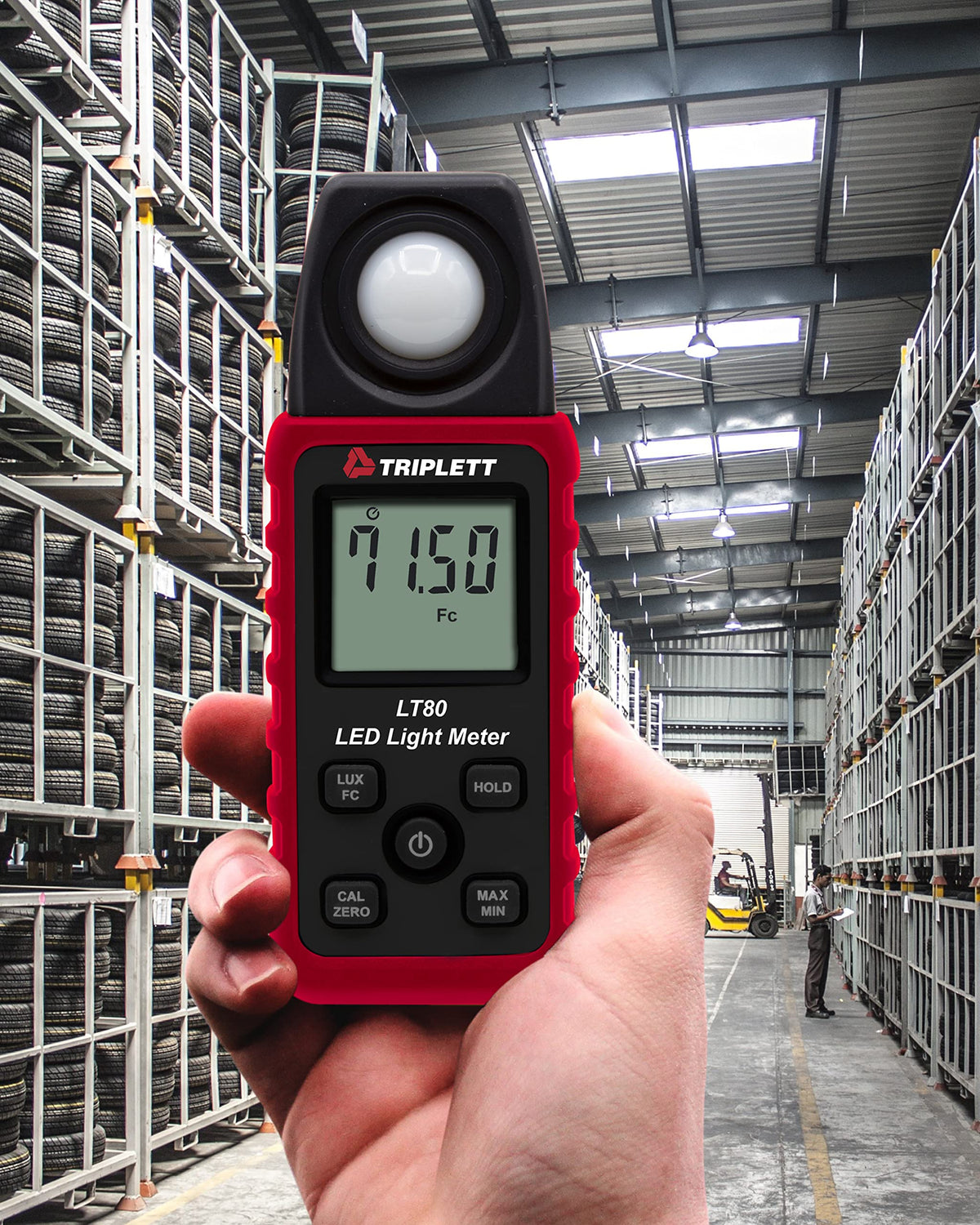 The Triplett Lt80 Led Light Meter Measures Light Intensity Up To 40K Foot Candles (400K Lux). Quickly And Easily Verify Osha Safety Requirements From White Led Light Sources Now Being Incorporated In Factories, Parking Lots, Schools, Offices, Transportation Lines, Warehouses, Hospitals, Schools, And Many Other Environments. The Lt80 Will Also Measure Light From Fluorescent, Metal Halide, High-Pressure Sodium, And Incandescent Sources. It Features A 9,999 Count Lcd Display, Silicon Photodiode Sensor With Spectral Response Filter, A Min/Max/Avg Function That Recalls The Highest, Lowest And Average Reading, Data Hold To Freeze The Reading On The Display For Easy Viewing, And Auto Power Off (With Disable) To Conserve Battery Life. Includes (2) Aaa Batteries And Pouch Case.