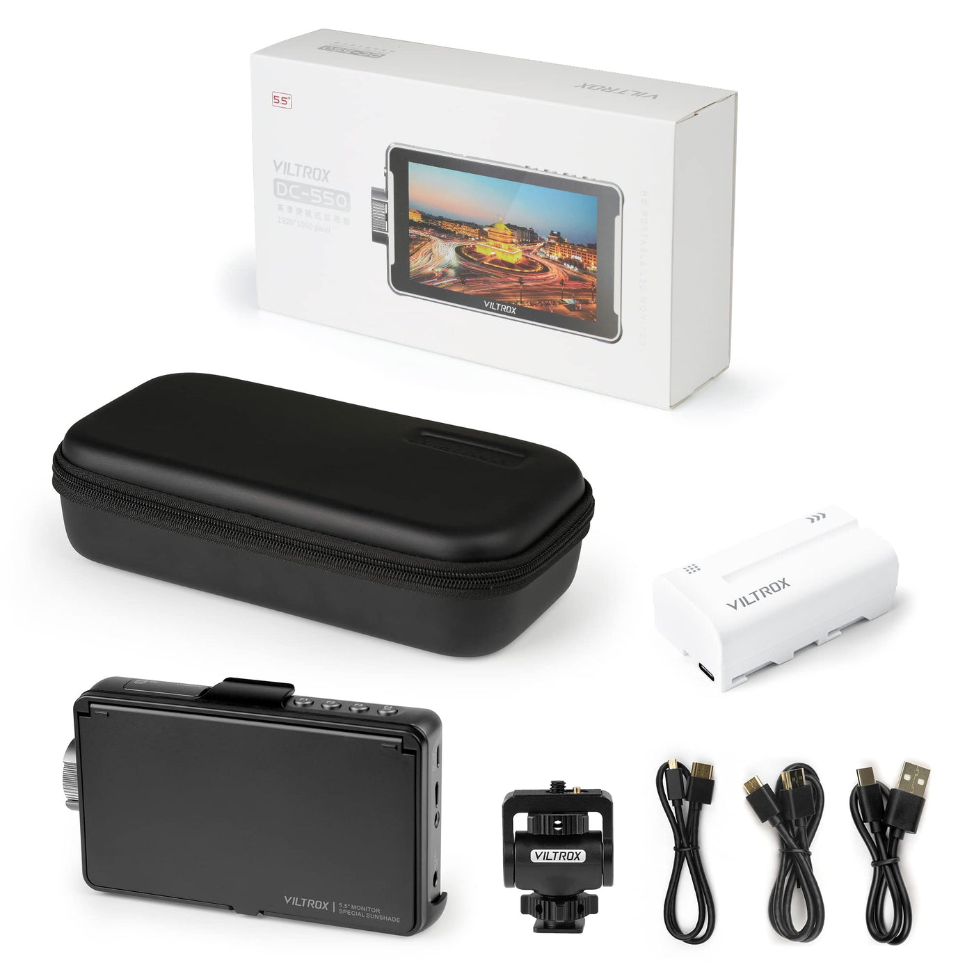 Viltrox Dc-550 Pro Is A High-Brightness 1200 Nit 5.5 Lcd Monitor, Equipped With Amazing Screen Processing Technology And Professional Monitoring Tools, Compact And Lightweight, Easy To Carry, Very Suitable For Video Bloggers, Film And Television Creators And The Photographers, No Matter Where You Go, You Can Have Everything In Sight. Support 3D Lut Log To Rec.709, User 3D Lut Upload Support Touch Menu High Resolution: Full Hd 1920X1080, High Contrast: 1200:1 1200Nit Daylight Viewable 178 Degree Wide Viewing Angles Ips Panel Parade Vectorscope Histogram Peaking Focus Assist False Colors Zebra Exposure (1%-100% Adjustable) Scan Mode (Under Scan, Over Scan) Zoom (1X, 1.4X, 2X, 4X, 8X, 10X) Anamorphic Mode Pixel To Pixel Nine Gird Center Marker Safety Marker (80%, 85%, 90%, 93% 96%) Ratio Marker (16:9, 14:9, 16:10, 4:3, 1.85:1, 2.35:1) Marker Color (Red, Green, Blue, White, Black, ) Check Field (Red, Green, Blue, Gray) Image Flip (H, V, H/V) Image Freeze Color Temperature Adjustment